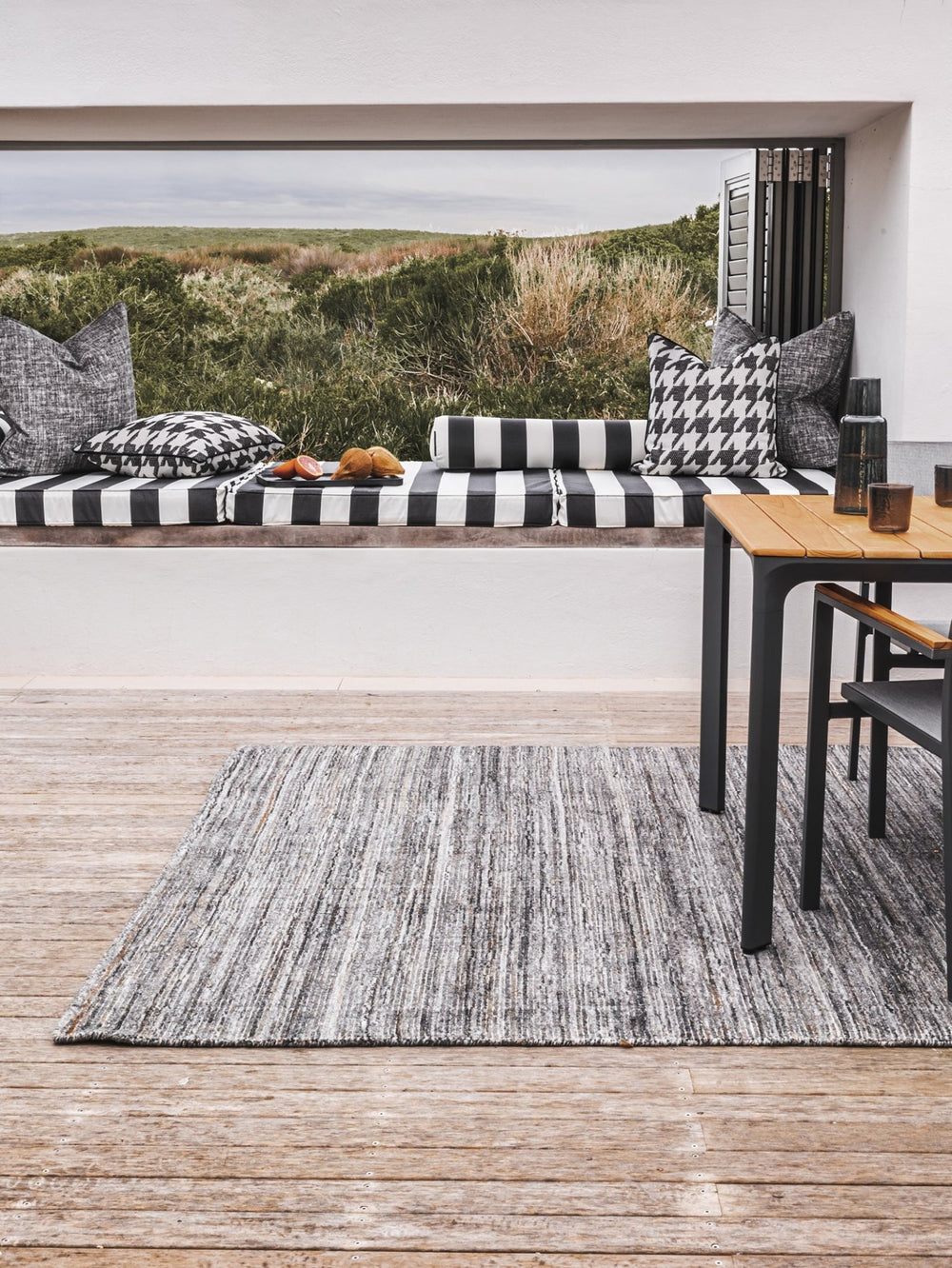 The rich, dark hues of Corsica rugs will ground outdoor and indoor areas, while bringing a chic touch to patios, decks, and gardens. Made of weather-resistant recycled PET polyester, these eco-friendly options are the perfect blend of practicality and sustainability. With the new Toasty colorway in warm tones and a double extra-large rug size (400x450cm), these rugs offer even more versatility for larger spaces. They're easy to clean without compromising on luxury, making them equally ideal as interior options for busy households. Available in two large sizes and the new double extra-large.