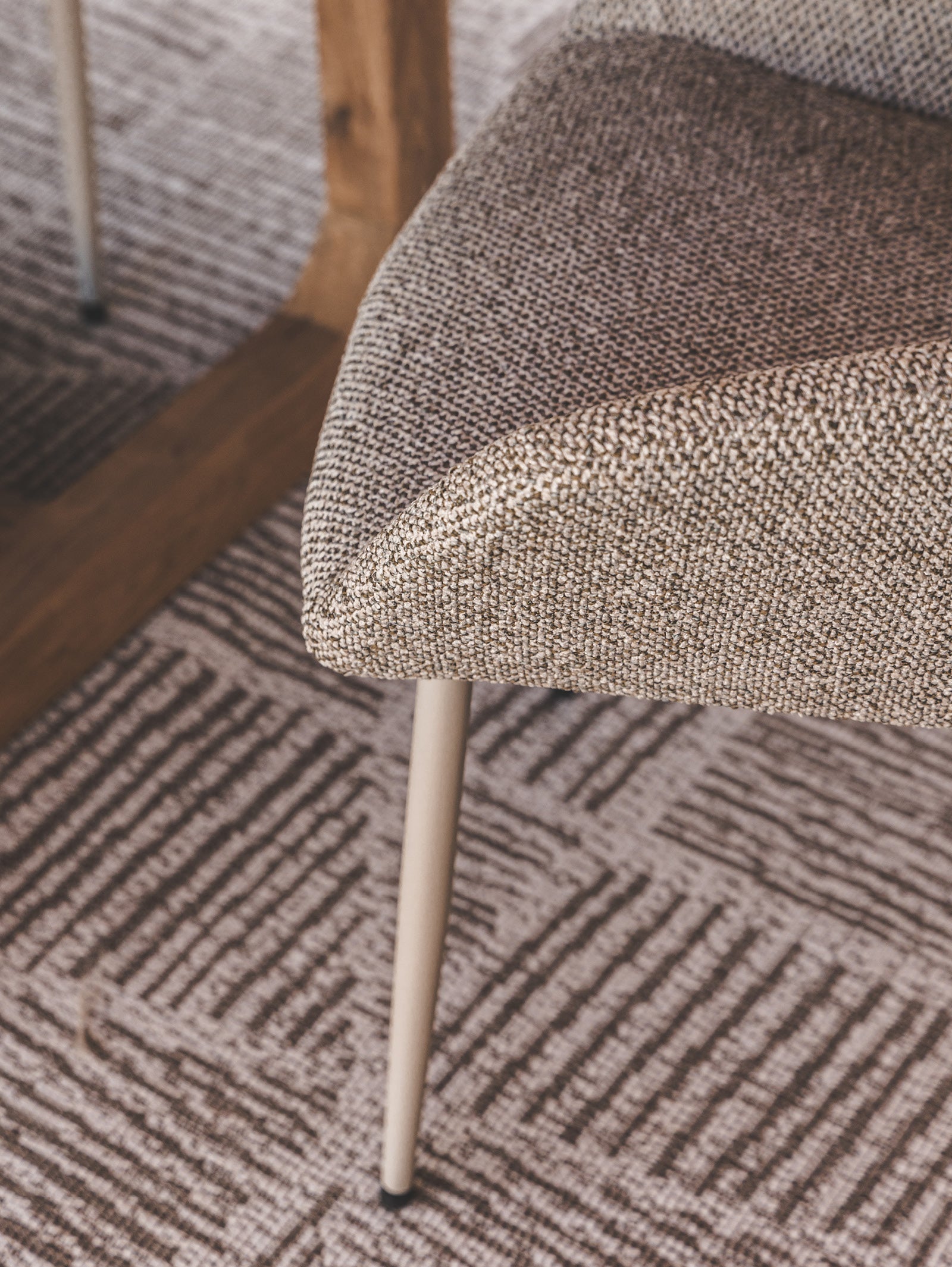 • Upholstered dining chair, steel frame and legs, covered with high-quality 100% polyester fabric.