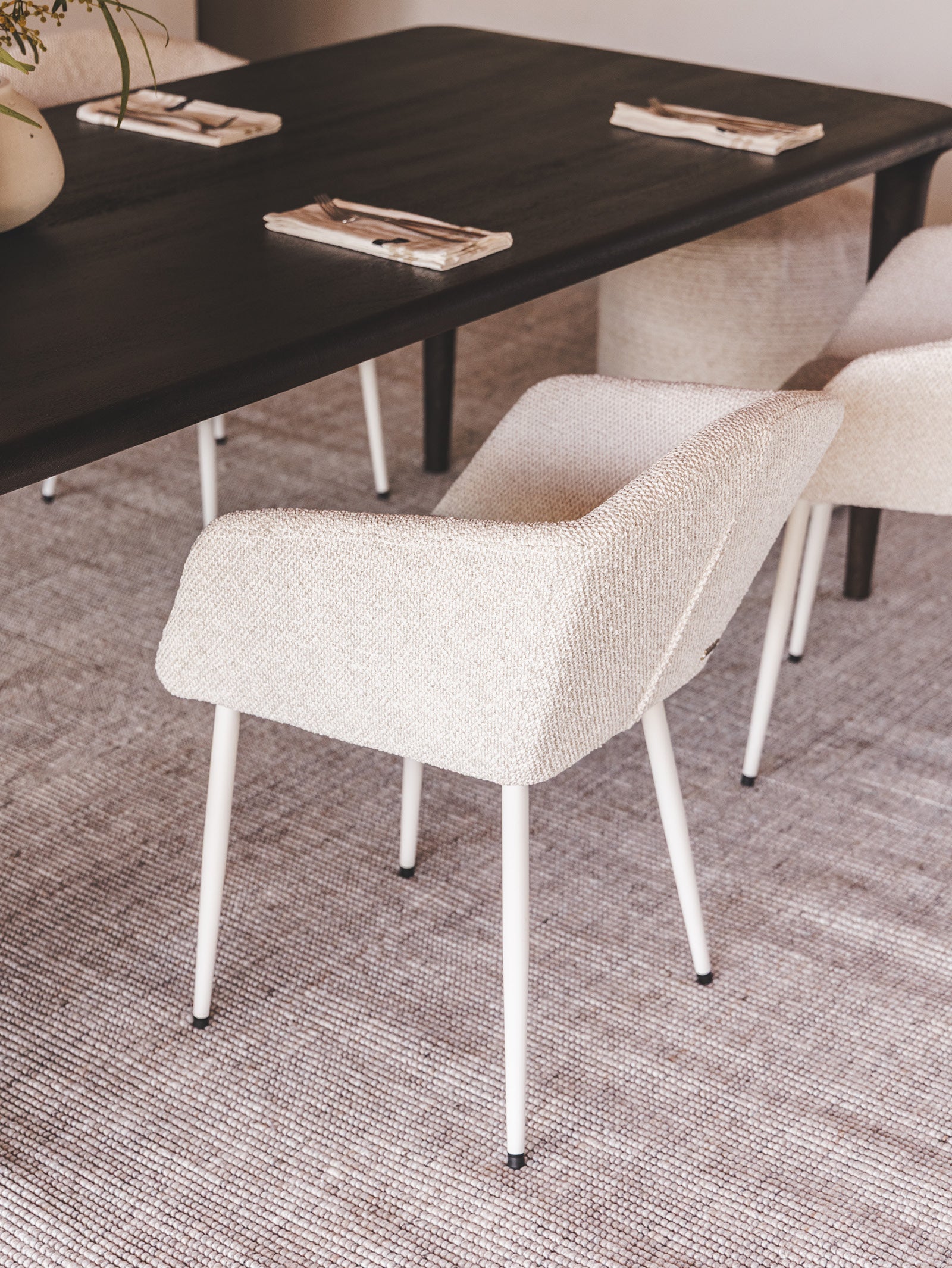 With its Scandinavian-inspired design, the Bradford dining chair is the perfect match for contemporary interiors. Upholstered with high-quality polyester fabric and supported by a sturdy steel frame and legs, the Bradford offers a comfortable seating experience for long meals and gatherings. Available in three shades.