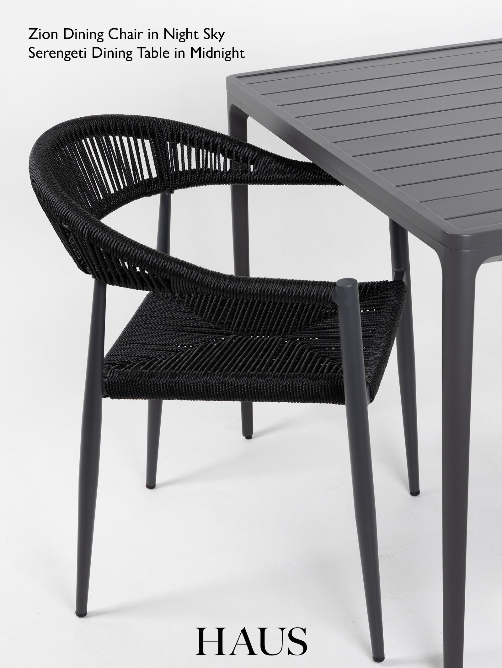 While outdoor entertainment areas invite relaxation, there’s no need to relax your standards of favouring chic, alluring design. The Zion outdoor chair is a functional crowd-pleaser that boasts a beautiful seat crafted with polyethylene wicker and a gratifying curved back on an aluminium frame. Offered in five nature-inspired colourways that will blend tastefully into exterior surroundings, it is the inspired choice for open-air entertainment.