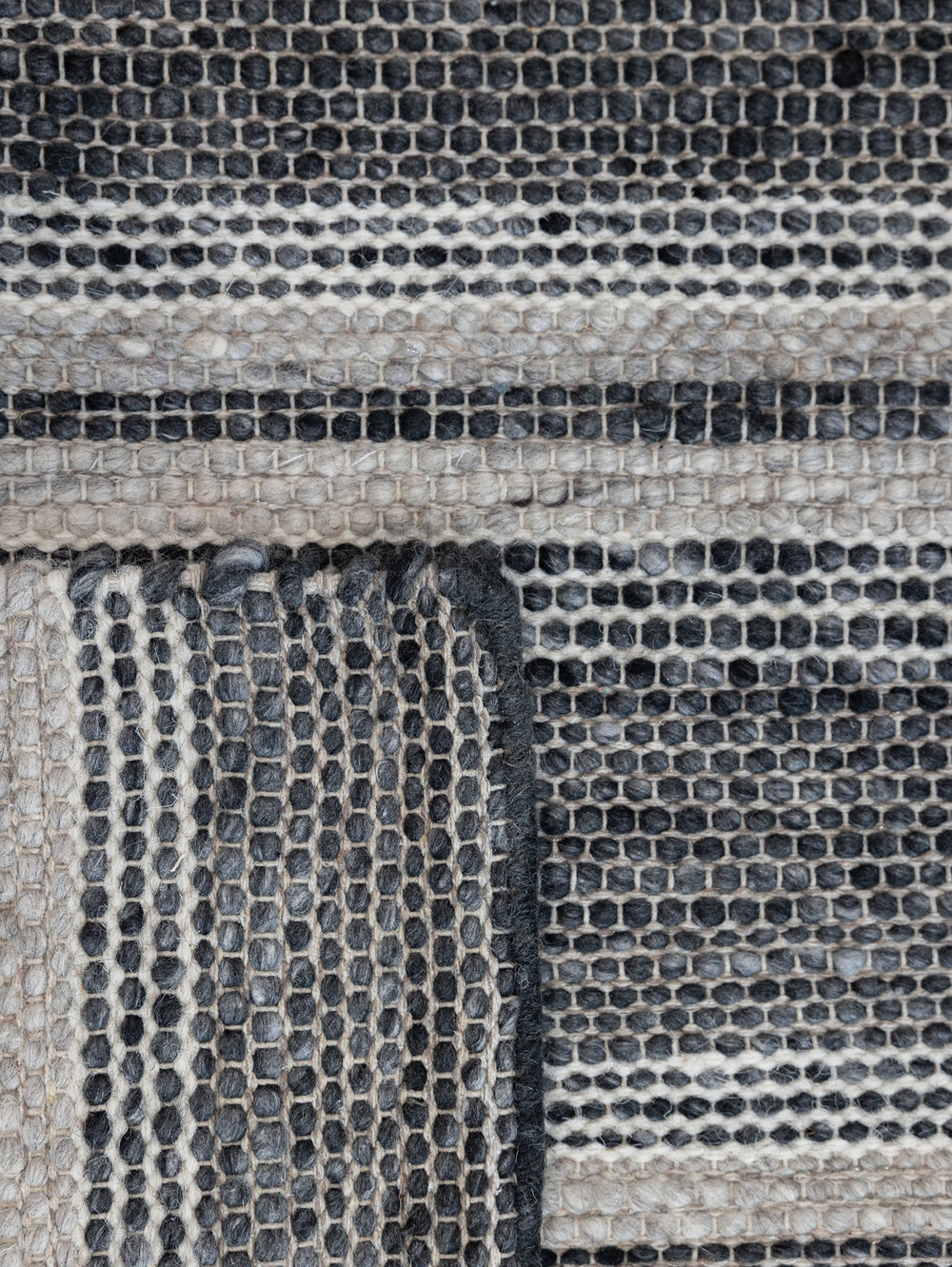 Handwoven large striped, wool-rich rugs in four versatile tones.