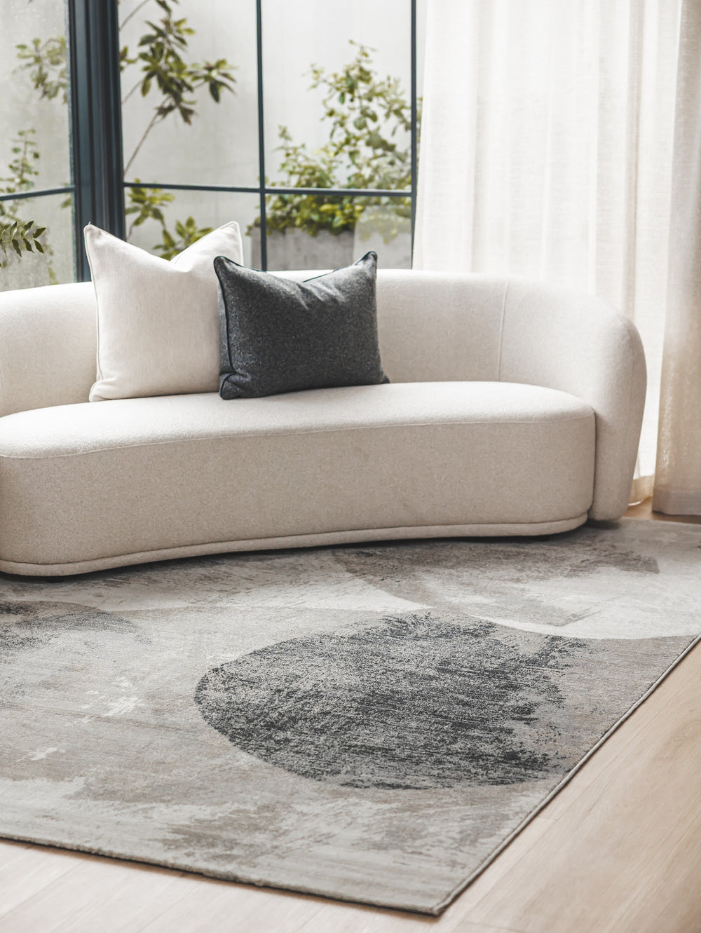 Empower rugs will bring visual texture and graphic form to bedrooms, living areas and home offices. Soft underfoot, yet resilient in their construction, these generously sized rugs feature a 100% polyester pile and will be a comforting, long-lasting addition to any home. Available in two versatile colourways and two large sizes, 200cm W x 290cm L and 280cm W x 380cm L.