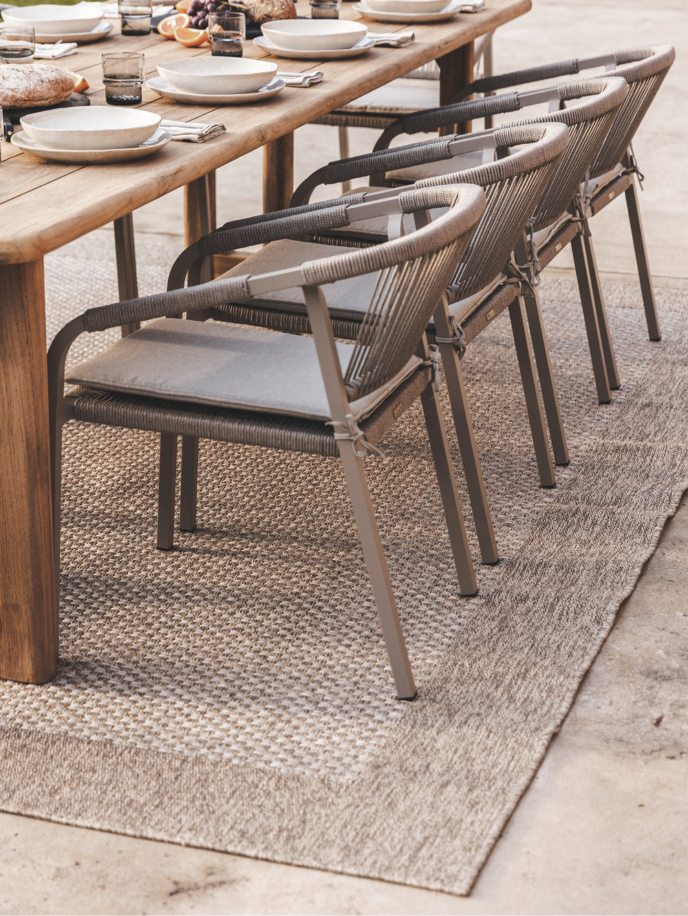 Jabari fully outdoor rugs are made of 100% polypropylene for exceptional durability in all weather conditions. Available in three styles and a multitude of sizes, these rugs feature rich, earthy brown tones that will bring an organic look to patios, porches and garden areas. Designed to resist fading, stains and wear, they combine lasting performance with a warm, textured aesthetic.