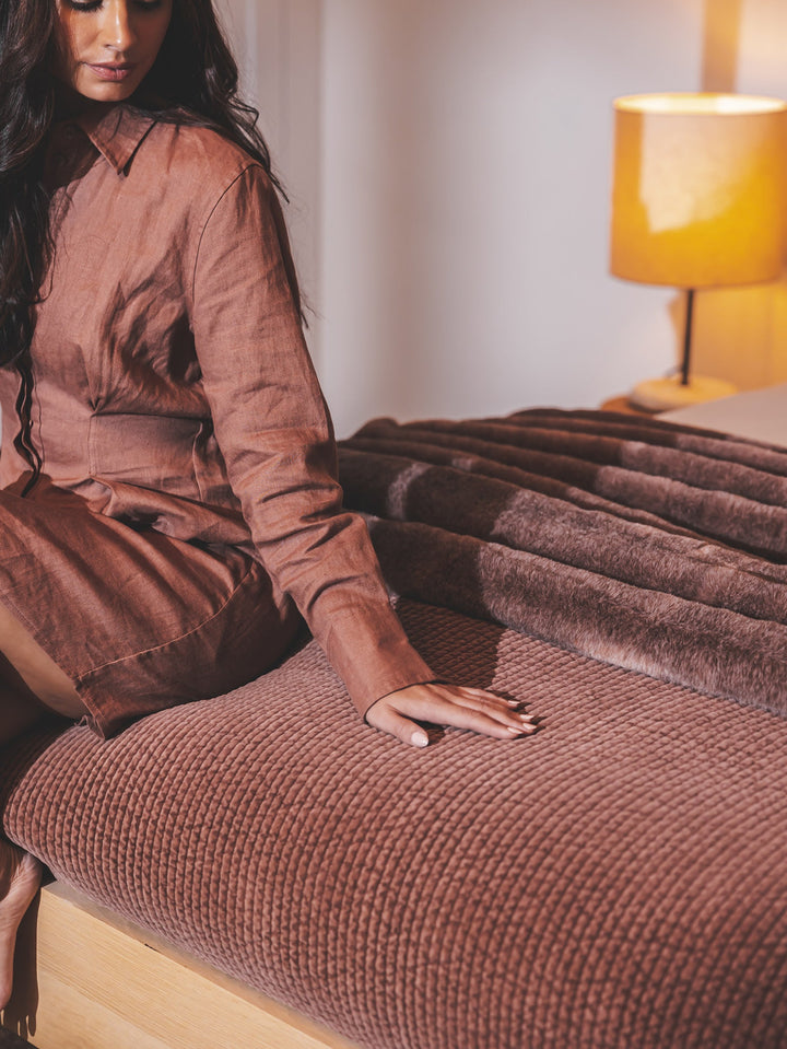 Luxuriously soft faux fur with frosted tips in jewel tones. Generously sized and fits up to a King bed.