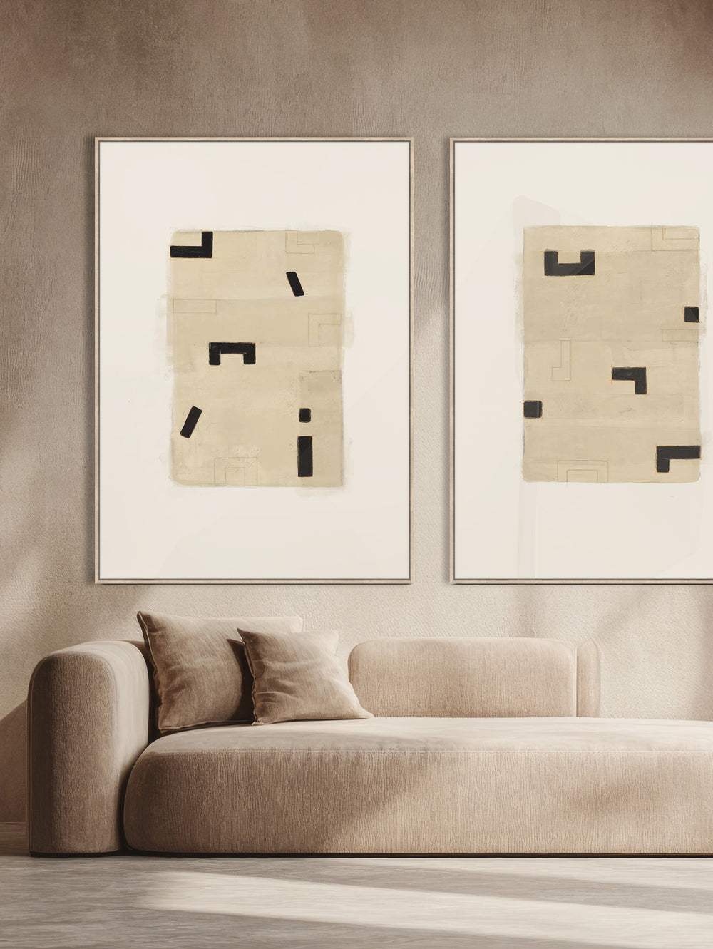 The gracefully understated Minimalist Wall Art Set of 2 in Natural from the Curated Wall Art range, invites a quiet sense of calm into any space, with its balanced composition and soothing visual rhythm. Each piece exudes a meditative stillness, offering a harmonious interplay of form and negative space that transforms the wall into a canvas of quiet refinement.