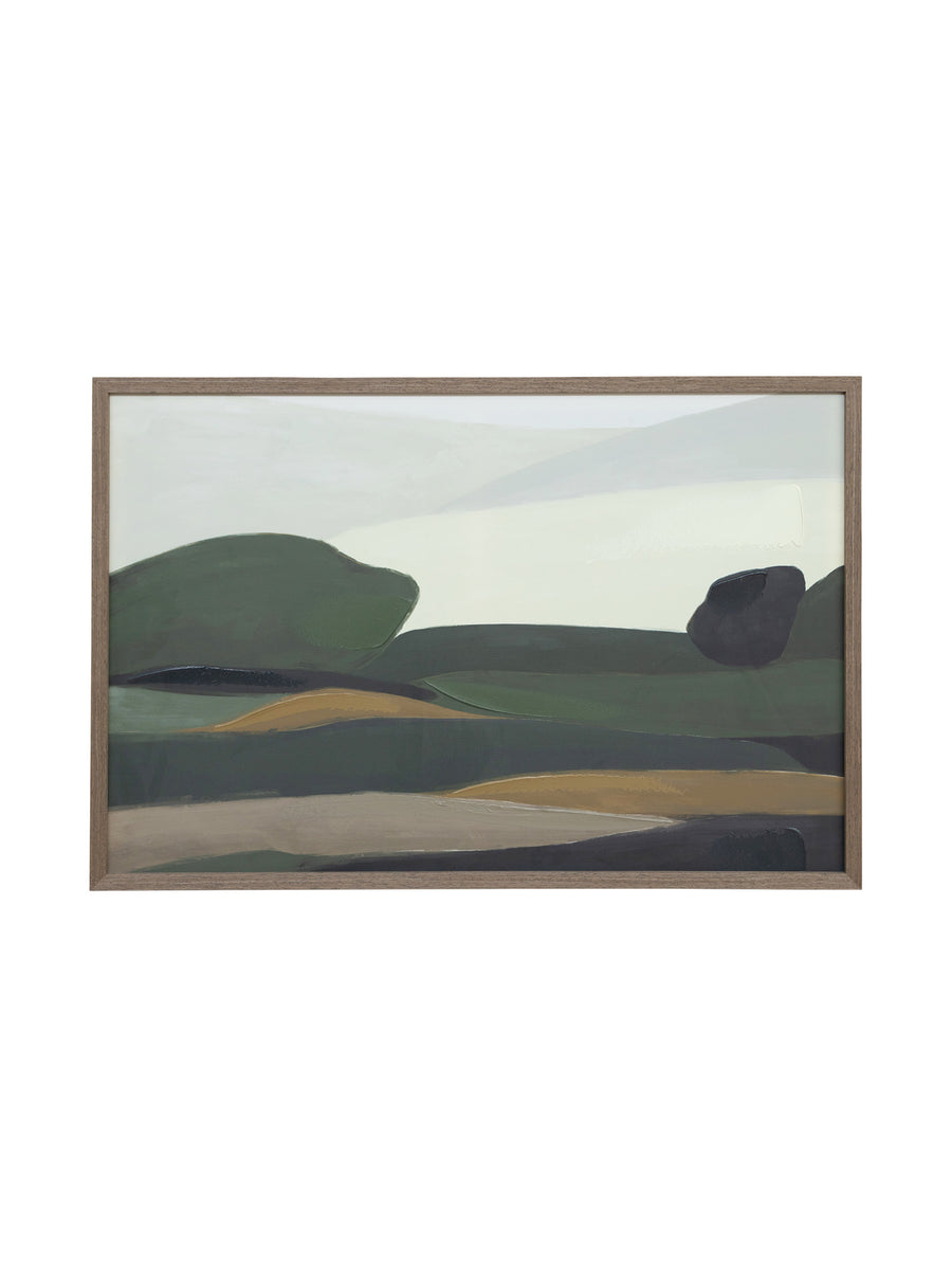 Invite the calm of open fields into your home with the Pasture Plains Wall Art in Verdant. This piece, part of the Curated Wall Art collection, features a printed canvas enhanced by hand-applied textures that evoke natural landscapes—and a palette that speaks of lush greenery and pastoral serenity. This artwork also features a solid wood Oak frame.