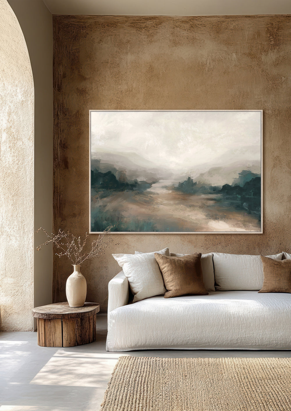 A canvas steeped in quiet drama, Smoulderfield Art in Dusk captures the fleeting beauty of twilight - where light fades into shadow and the landscape softens into mystery. Its palette, rich in smoky hues and muted earth tones, evokes the final glow of day as it surrenders to night. Taken from the Hertex Haus Curated Wall Art collection.