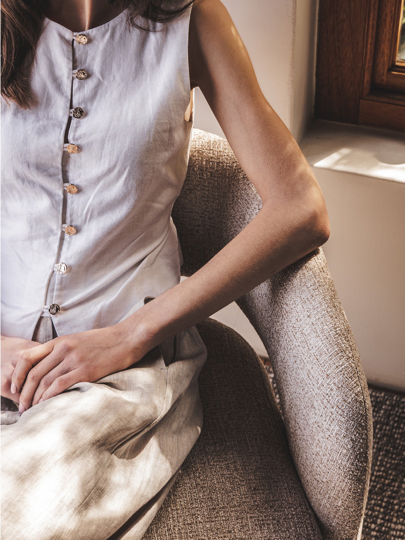 Experience comfort and style in motion with the Diane swivel chair. It features a smooth 360-degree swivel mechanism made of steel, offering flexibility without sacrificing stability. The chair is upholstered with Hertex's Cosmopolitan fabric, a soft, high-performance polyester that comes in four colours. With its sturdy wooden frame, this piece offers lasting support, while bringing modern elegance and everyday functionality together.