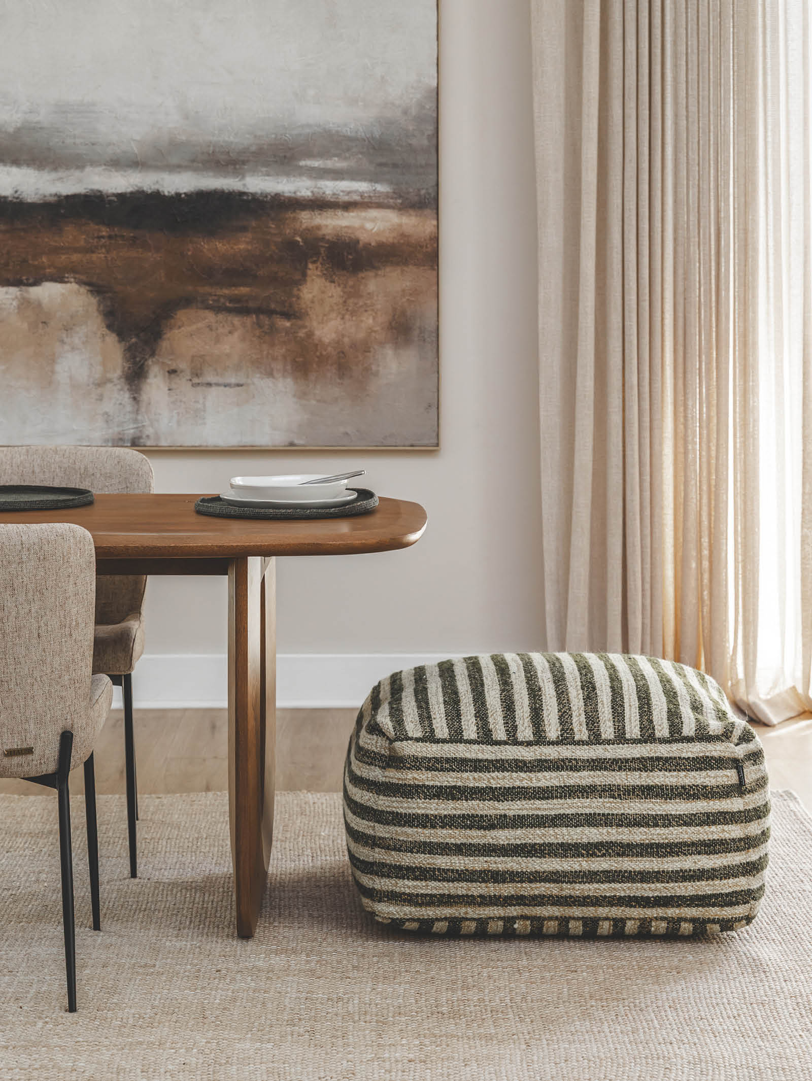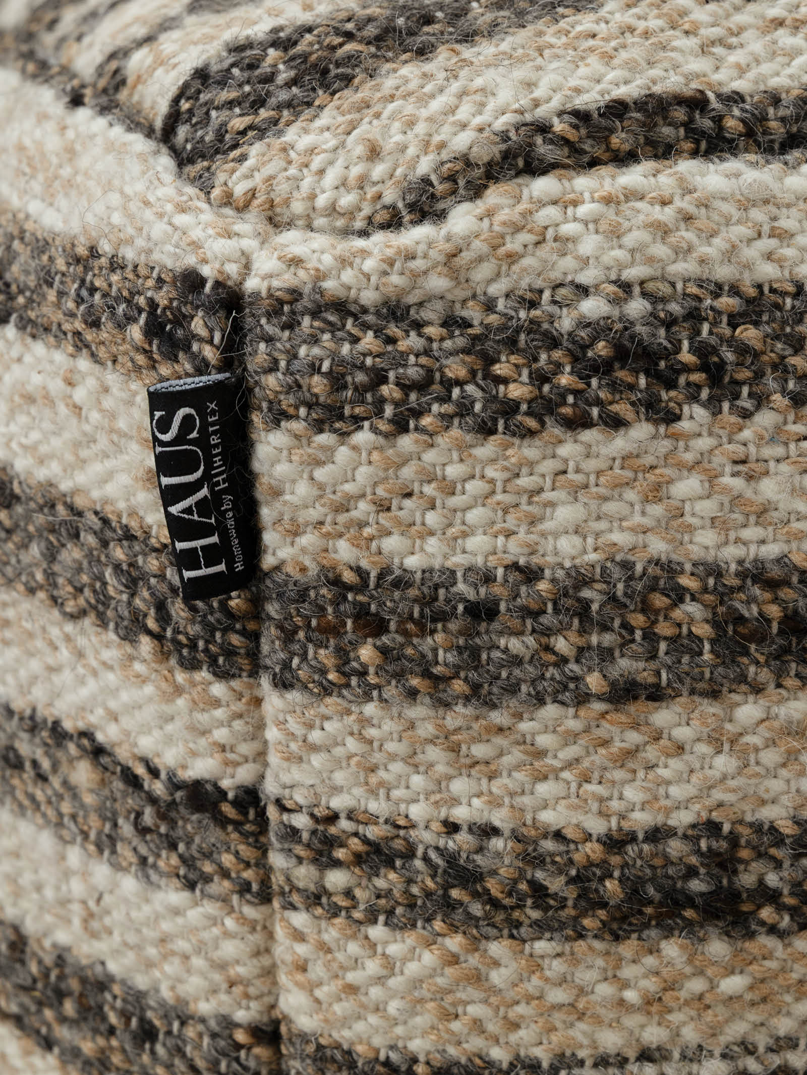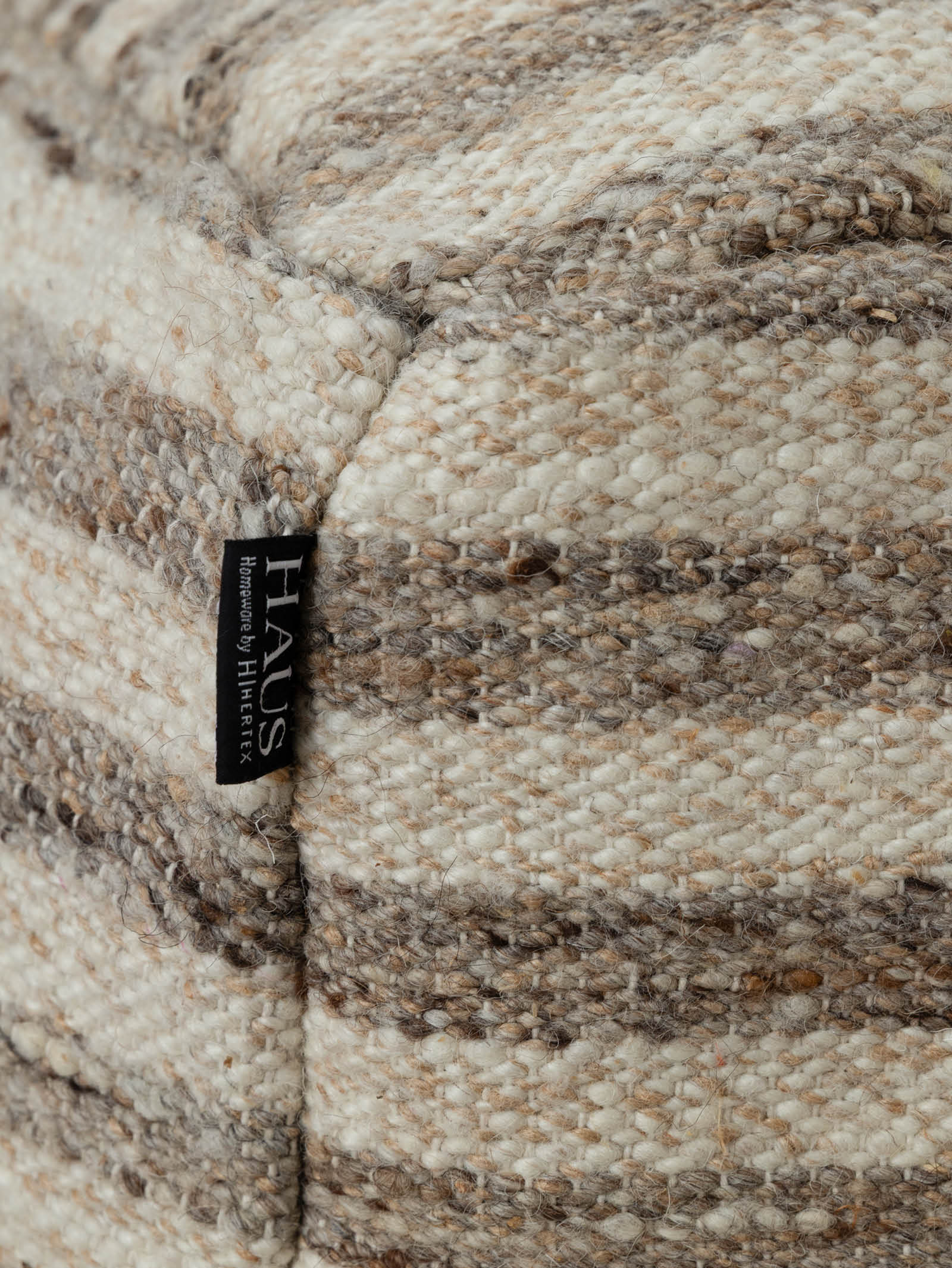 Embrace natural texture with the Paralla ottoman, which is upholstered with our Paralla rugs, a rich blend of wool and jute. Featuring timeless stripes in a palette of soothing nut colours, this cushy seat offers style, comfort and durability. It's filled with high-quality EPP beans, offering a supportive yet flexible seat that won't flatten over time. It's the perfect accent piece for extra seating or relaxed footrests.