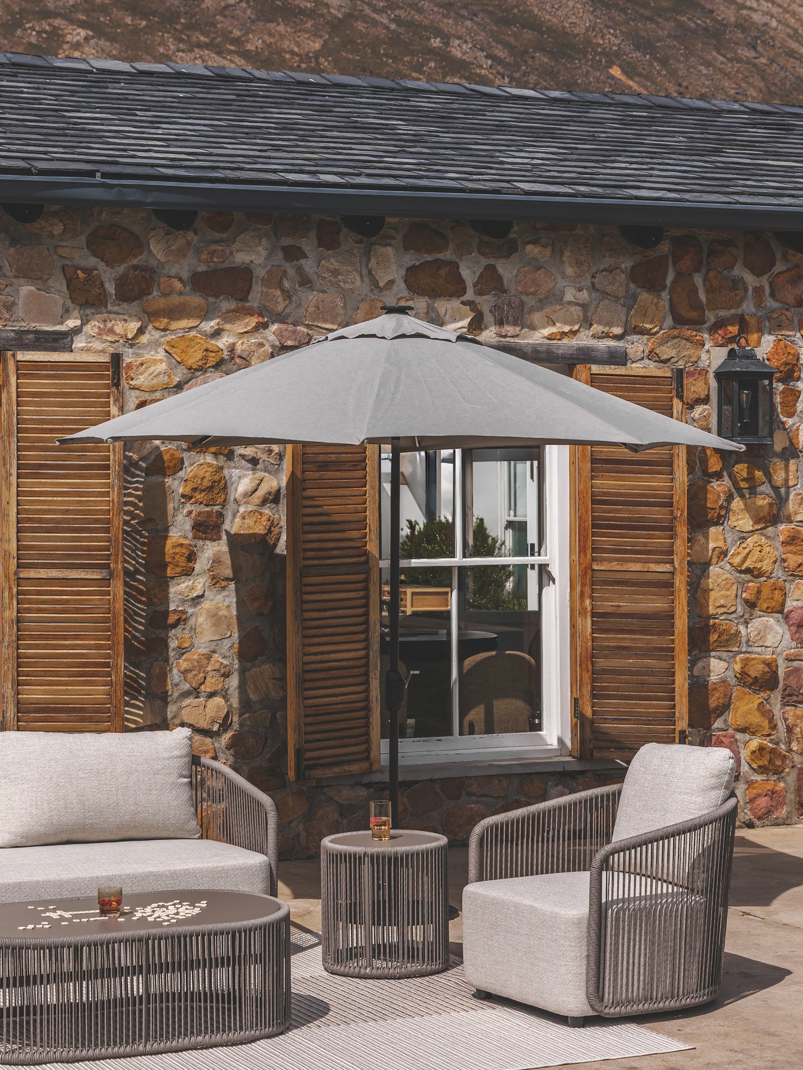 centre pole option, with its auto-tilt function, or the cantilever umbrella, which features a smooth 360-degree swivel and tilt function. Better yet, when they're not use, the umbrellas double as nifty mood makers, thanks to their solar-powered and USB-rechargeable LED light strips, which will bring a bit of ambience to evening entertaining.