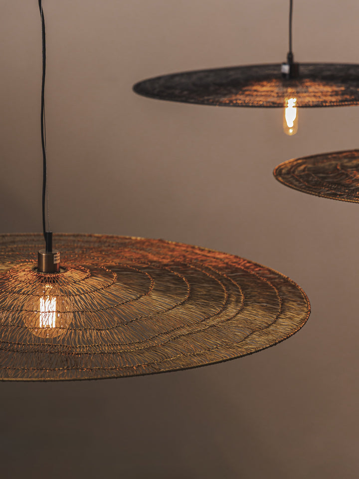 Crafted with precision by hand, this uber-chic disc-shaped pendant will add a modern edge to any space. Constructed from high-quality iron mesh, this light will add visual interest and allow light to diffuse beautifully, creating a warm and inviting ambience. Available in three sizes and two colours.