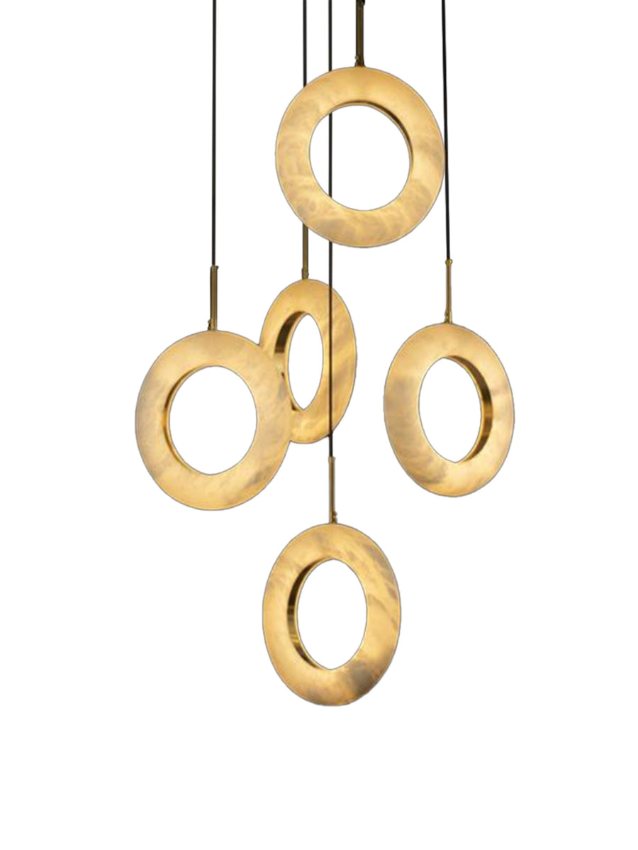 Take your lighting to divine heights with our Olympus multi pendant, a masterpiece that features light rings fashioned from alabaster marble. This stunning installation will bring a harmonious blend of natural texture and light to living areas, adding a touch of grace and grandeur to modern homes.