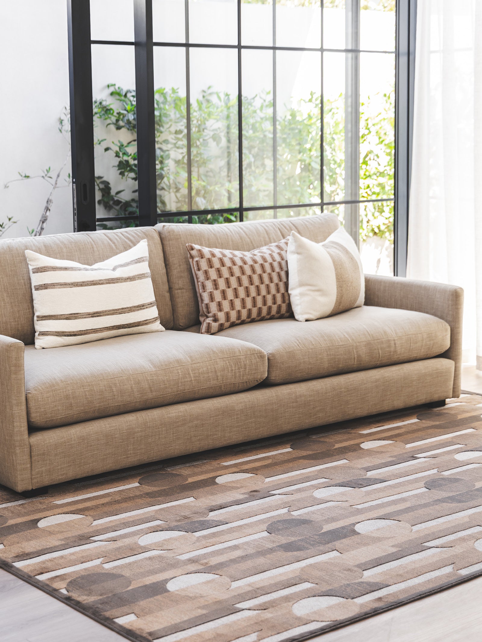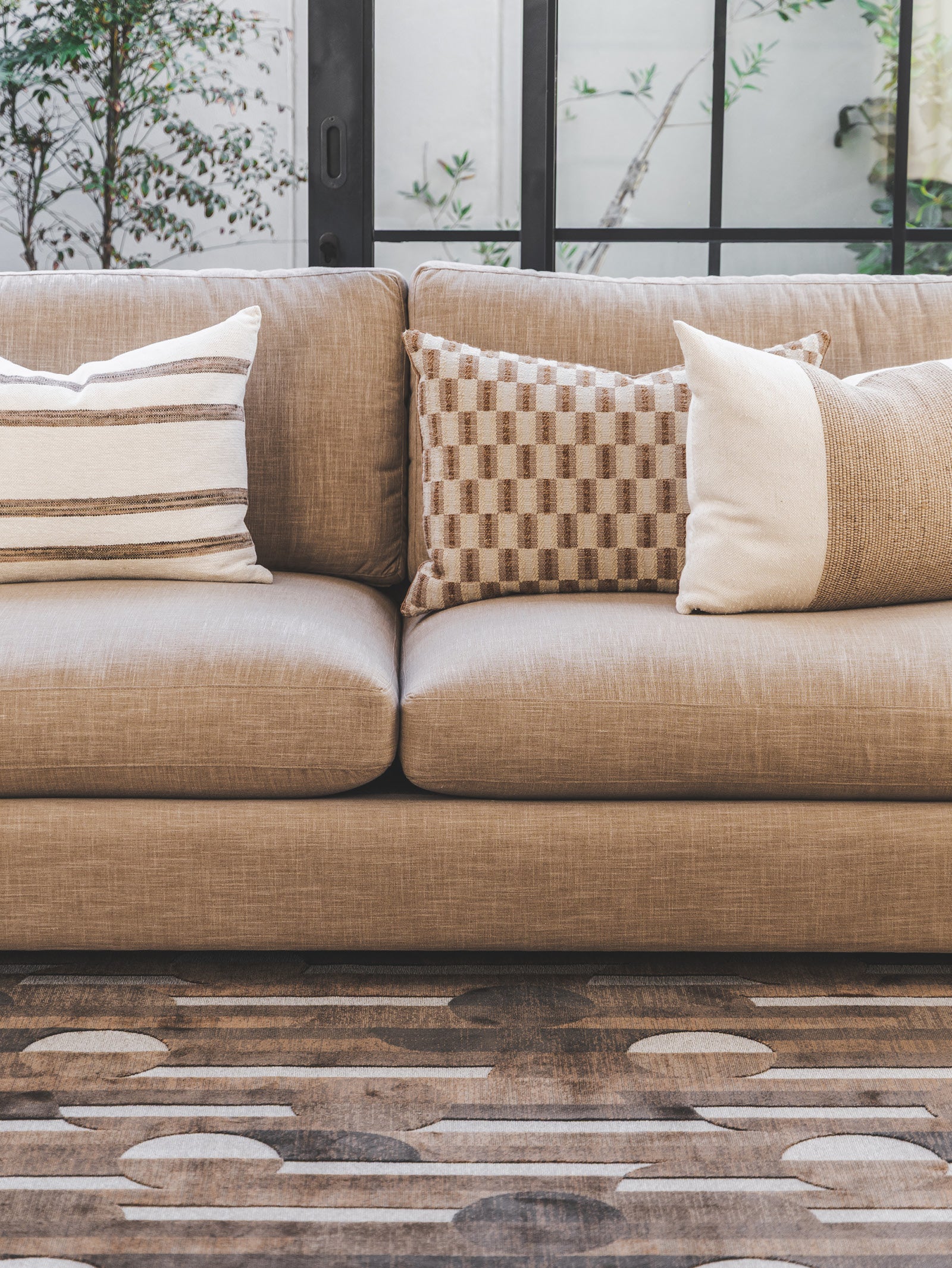Modern linen-cotton-wool blend scatters in earthy colours.