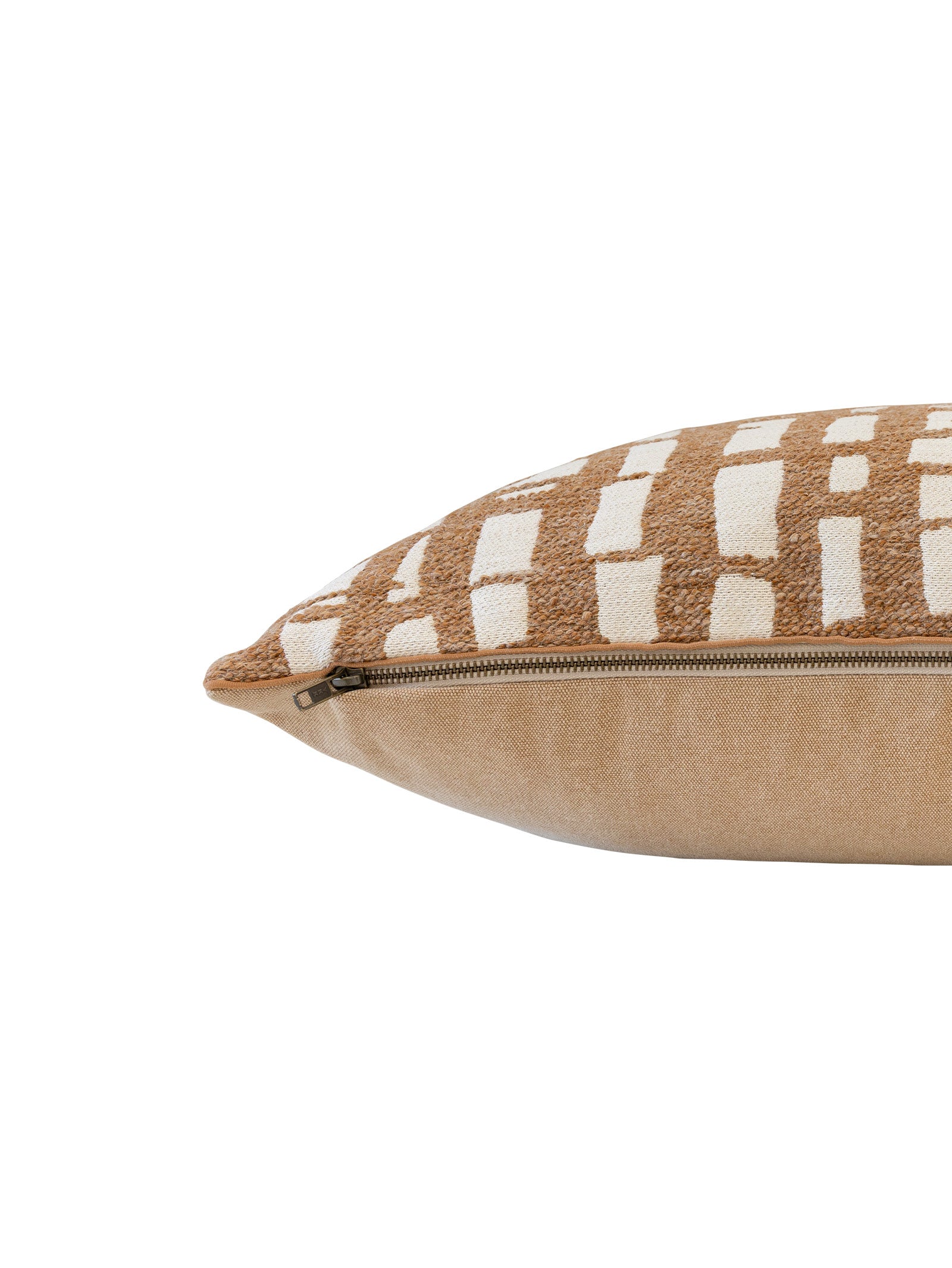Modern linen-cotton-wool blend scatters in earthy colours.
