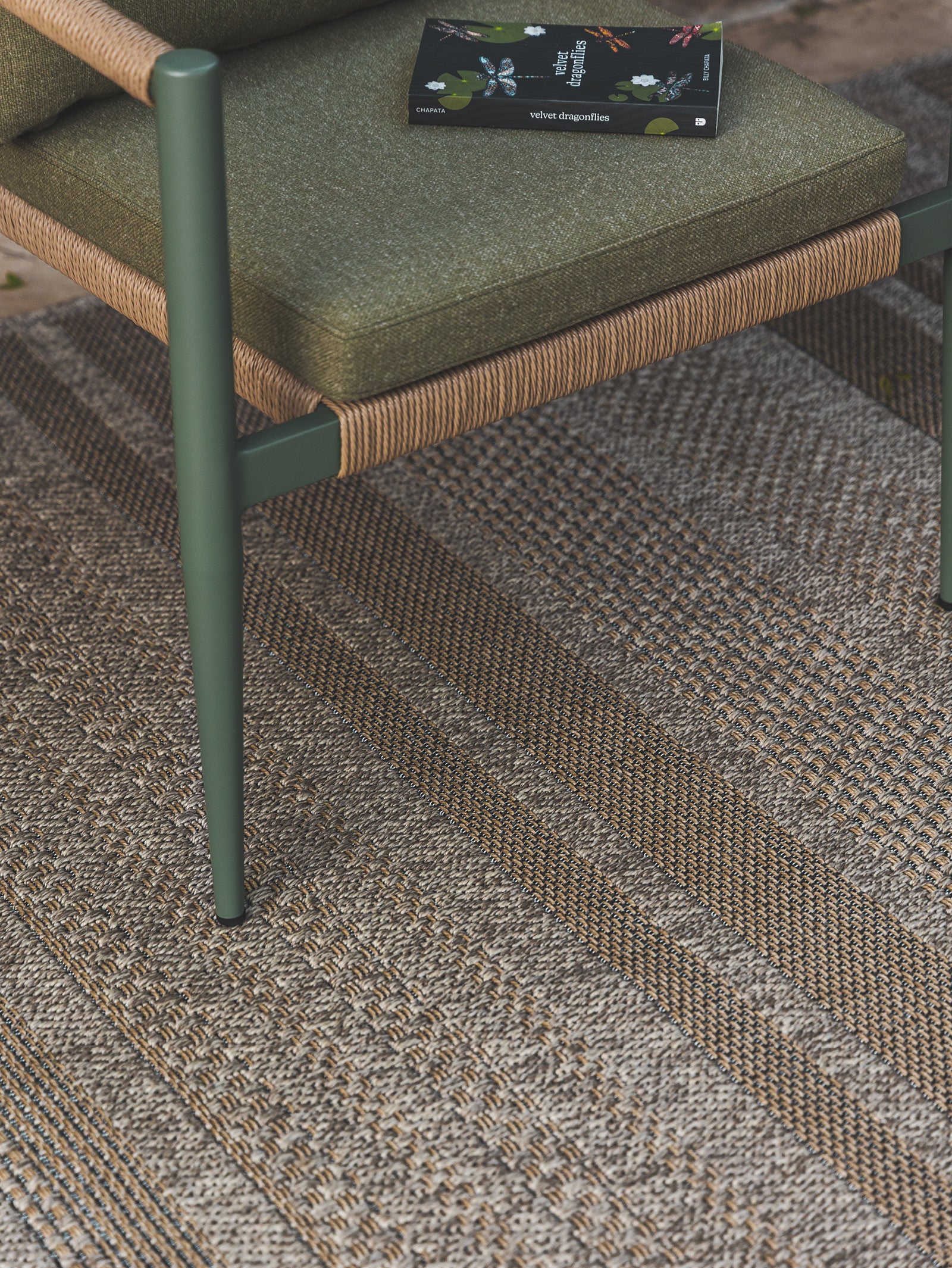 Jabari fully outdoor rugs are made of 100% polypropylene for exceptional durability in all weather conditions. Available in three styles and a multitude of sizes, these rugs feature rich, earthy brown tones that will bring an organic look to patios, porches and garden areas. Designed to resist fading, stains and wear, they combine lasting performance with a warm, textured aesthetic.