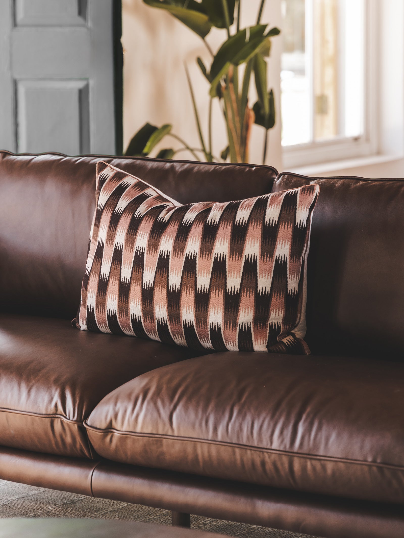 Genuine Italian leather four-seater sofa with feather-filled cushions.