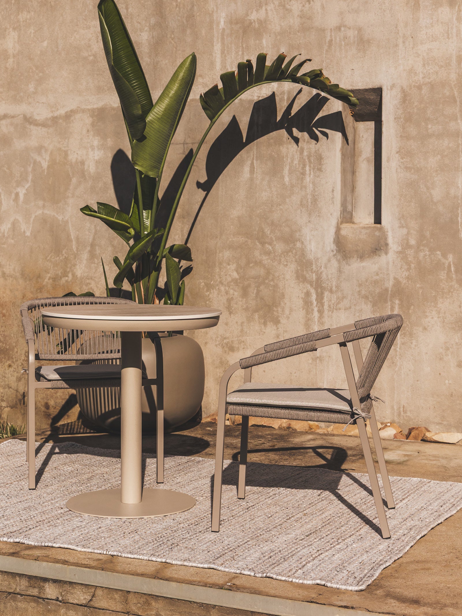 • Aluminium frame chair with UV-resistant rope and outdoor Olefin cushions.