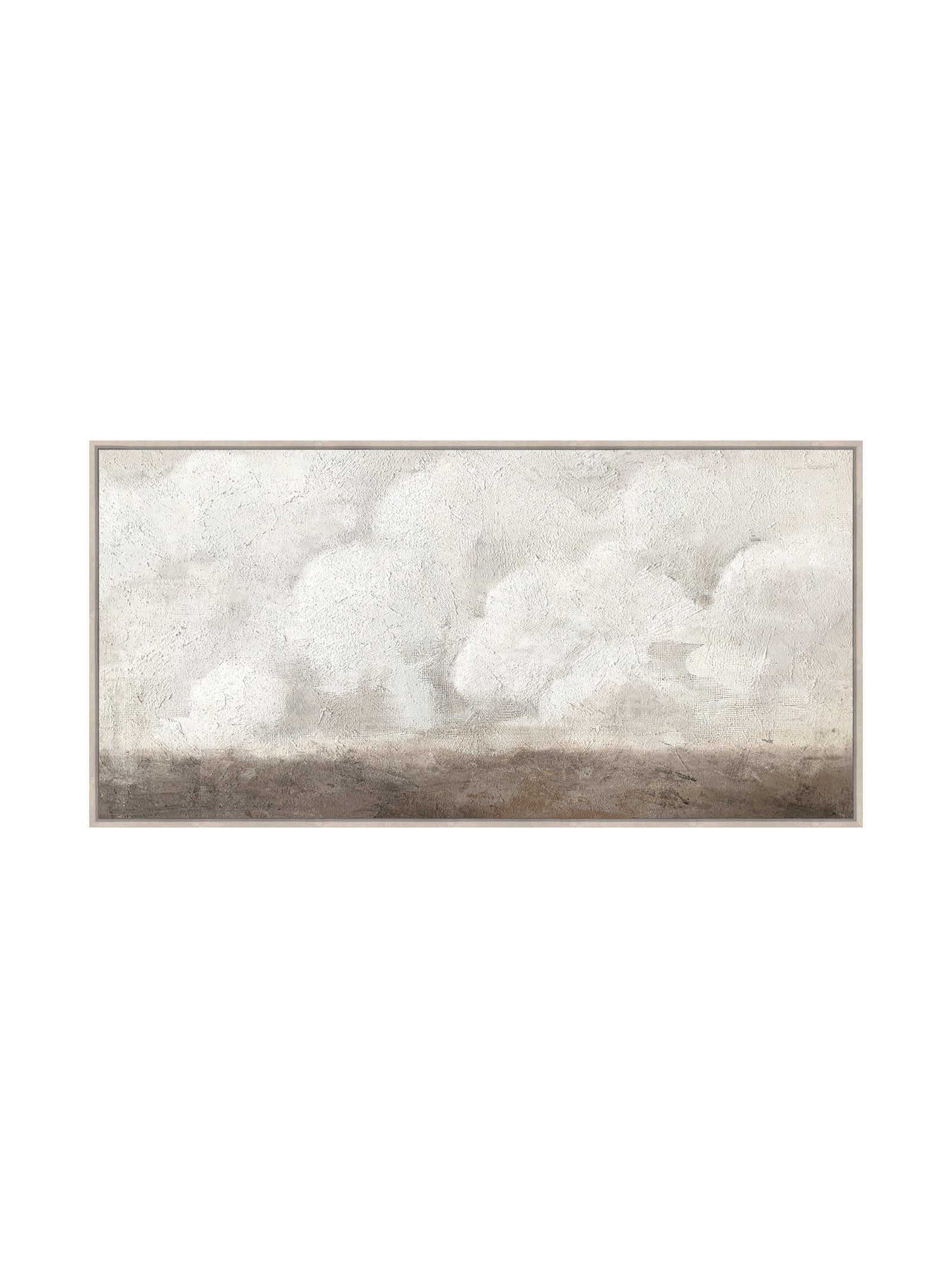 Elevate your interior with the soft serenity of In the Clouds Wall Art in Cotton, a refined piece from our Curated Wall Art collection. This framed, printed canvas features a premium hand-painted finish that adds depth and texture, creating a layered, painterly effect that evokes the gentle drift of clouds across a tranquil sky.