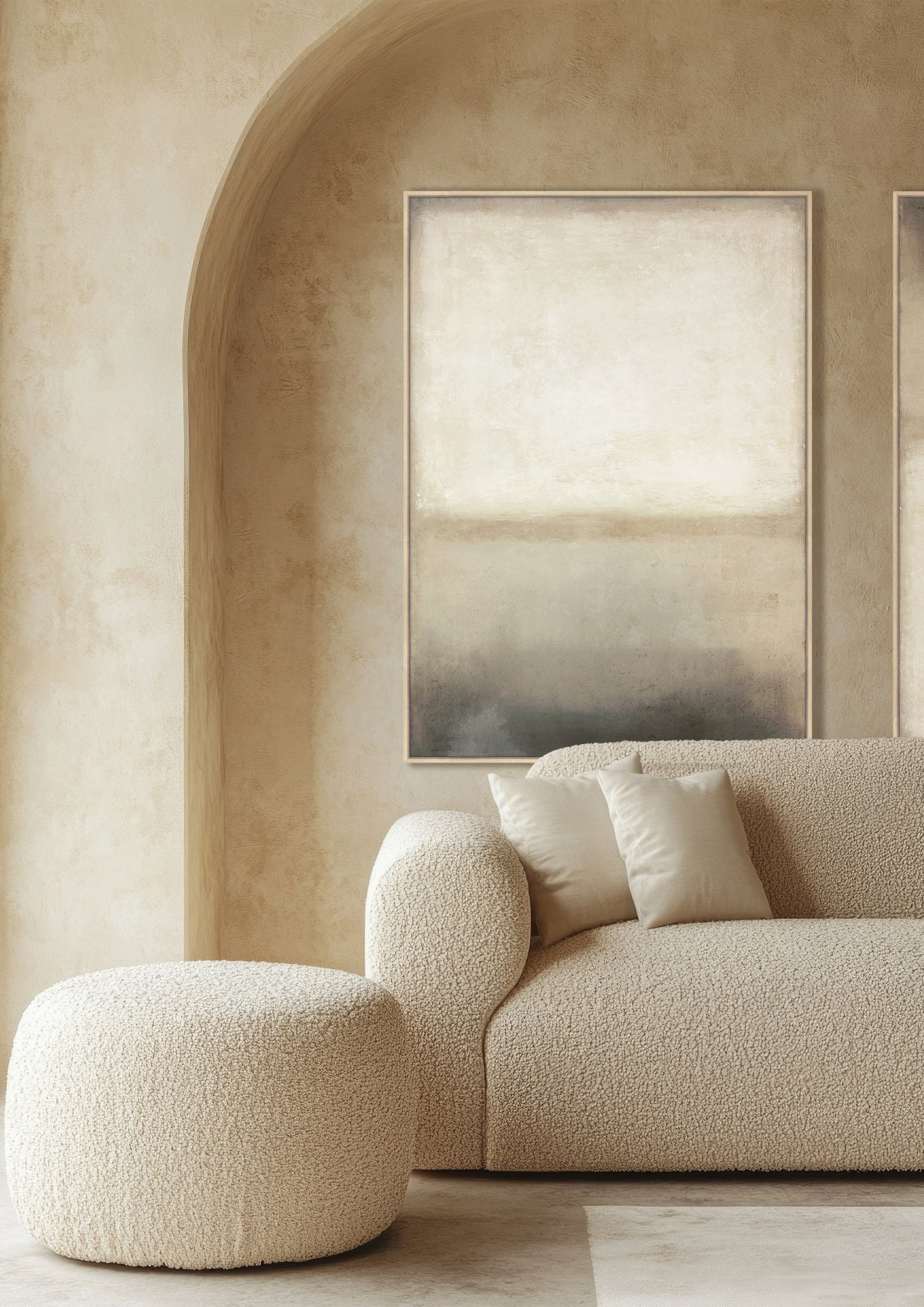 Softly abstract and richly textured, the Moodscape Wall Art in Cloud invites a sense of calm and introspection into your space. Taken from the Curated Wall Art collection and crafted on hessian canvas, this large artwork is a statement piece designed to elevate contemporary interiors.