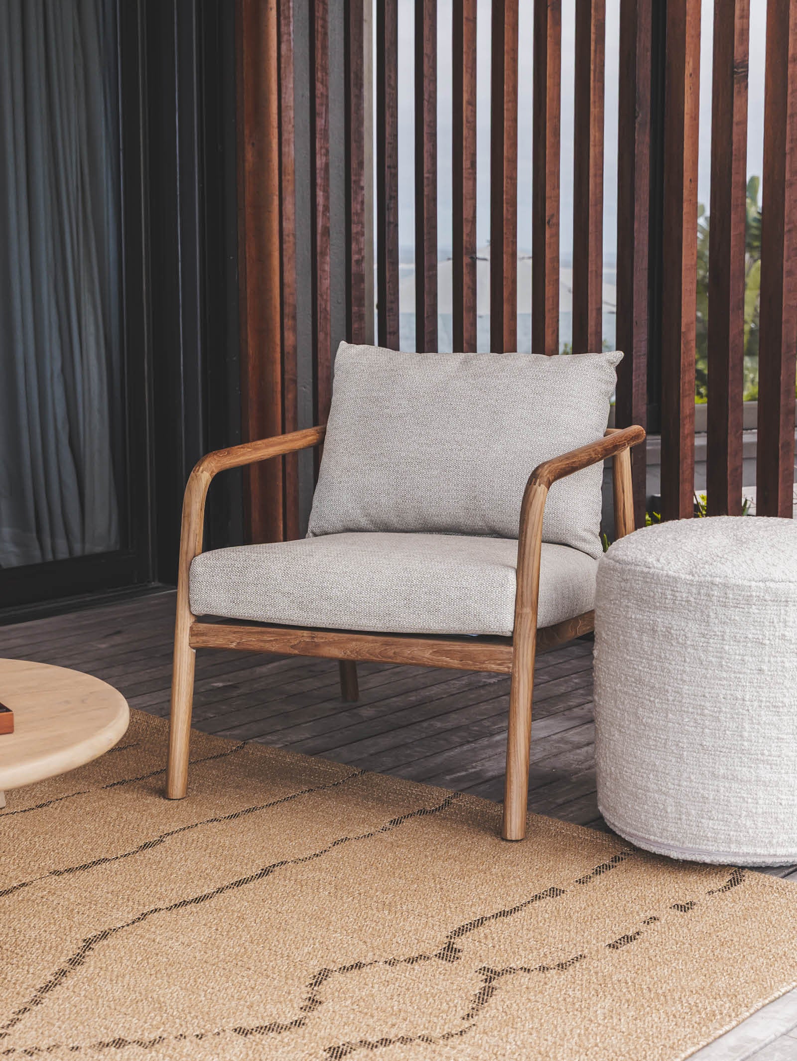 With their tribal geometric patterns, the two designs in this range, Marcus and Palau, are bold, structured and on trend. Natural tones and black line accents give them a contemporary aesthetic, while their polypropylene composition renders them ready for the elements and fully outdoor. Available in two large sizes.