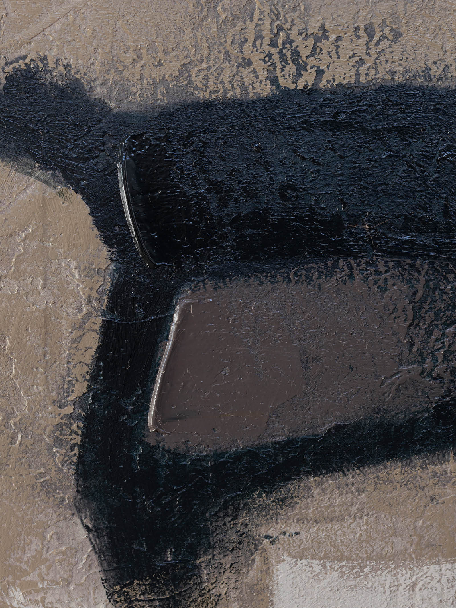 Toned in Brown art is an extra-large artwork that commands attention with its bold abstract composition, rendered on a natural hessian canvas that adds an organic, earthy feel to the piece. A heavy-textured paint finish adds a touch of visual interest to the piece.