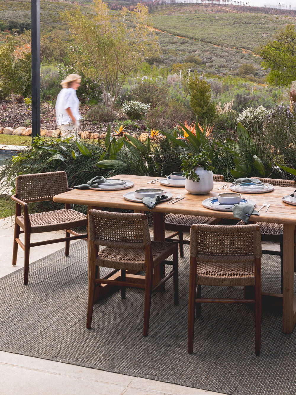 Crafted from high-quality recycled teak, the Osaka furniture range blends functionality with sophistication. Warm wood tones will lend a touch of rustic charm to any space, while a sturdy construction ensures longevity. The dining table is available as a six-seater or 12-seater, while the bar table will be an elegant addition to a drinks area. These items are made of raw teak wood and will weather and develop water stains if exposed to the elements or spills. We recommend these items be sealed if required.