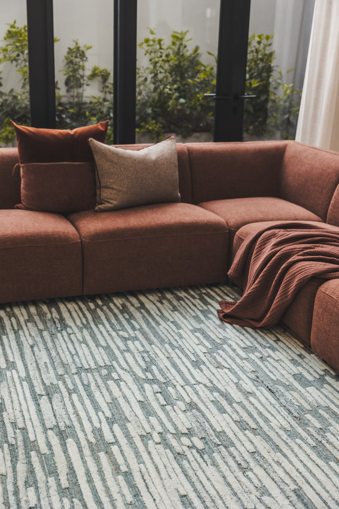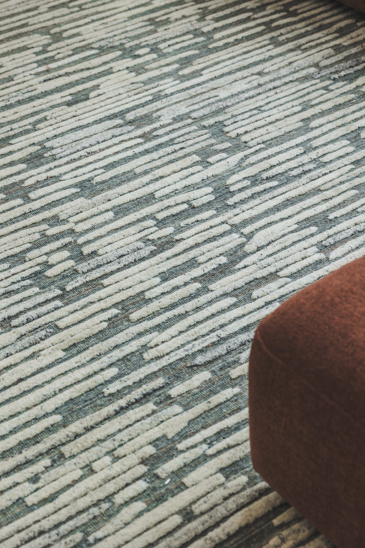 Hand-knotted, wool-rich and softly striated for a grounded look of everyday elegance.