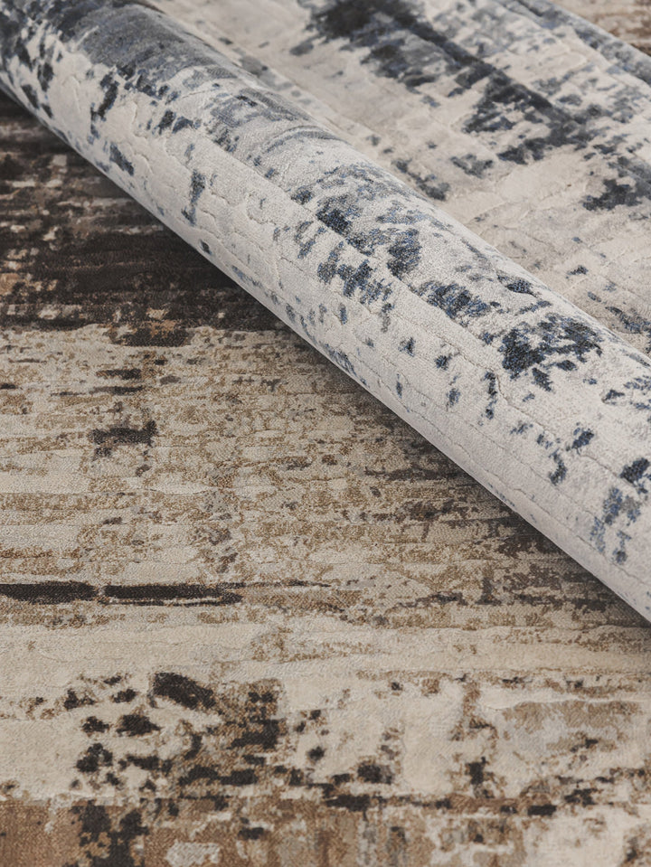 Durable heat-set rug with abstract design and deep tones for modern impact.