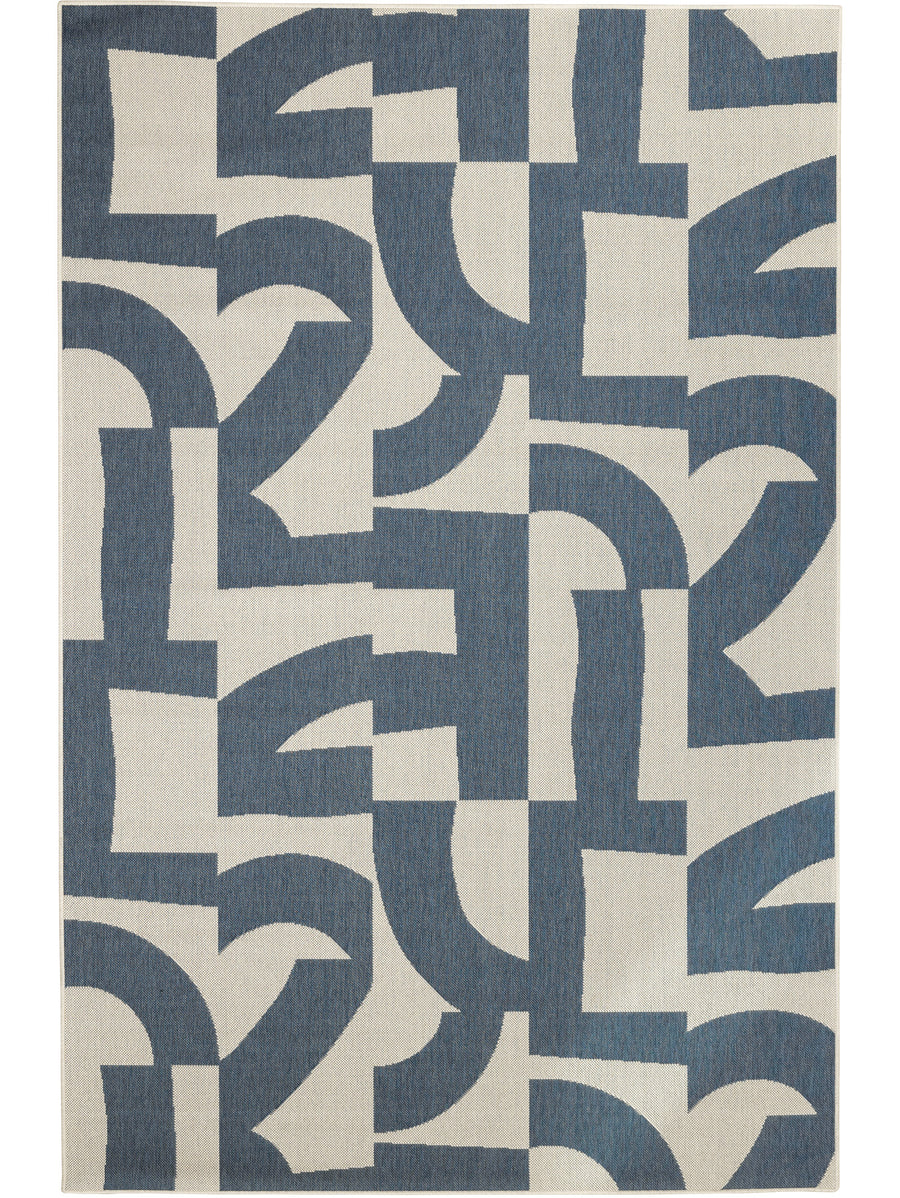 Fully outdoor polypropylene rugs and runners with a geometric design.