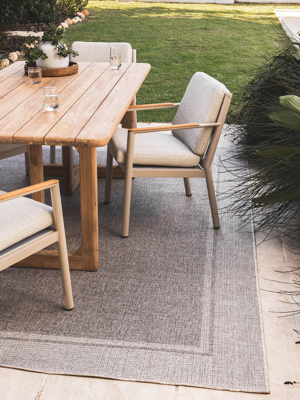 Define seating areas or walkways with our Andalusia outdoor rugs and runners. Made of weather-resilient polypropylene, these rugs are designed to withstand the elements year-round. Chocolate tones imbue them with warmth and versatility, providing a harmonious backdrop for modern, rustic or eclectic outdoor schemes.