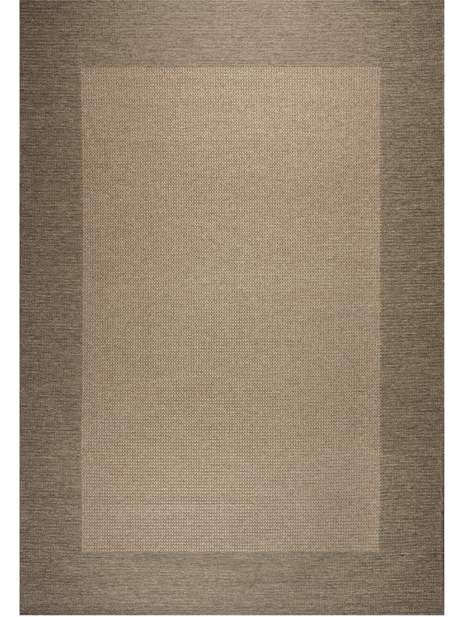 Outdoor polypropylene rugs with grounding border and versatile tones.