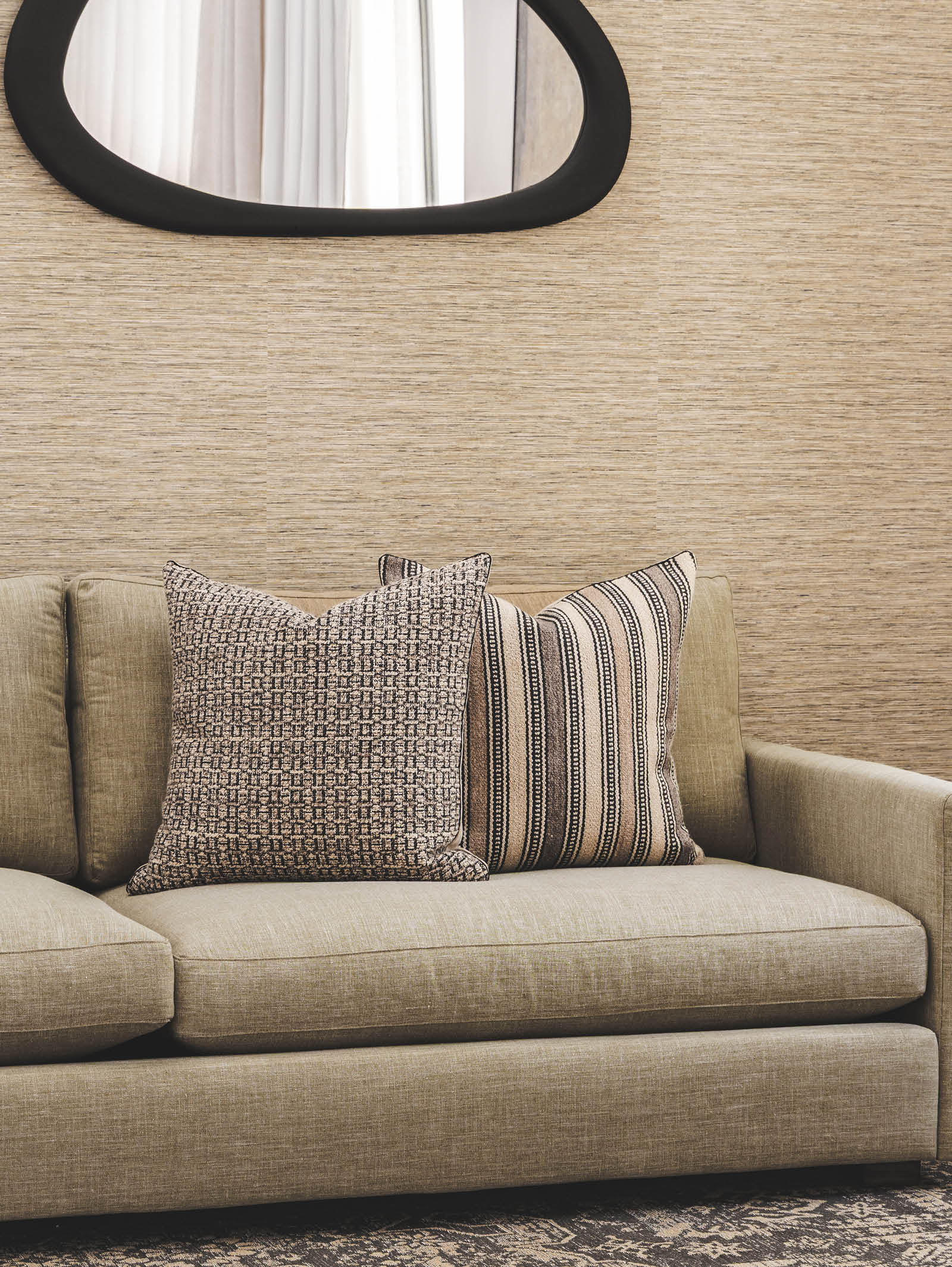 Modern linen-cotton-wool blend scatters in earthy colours.