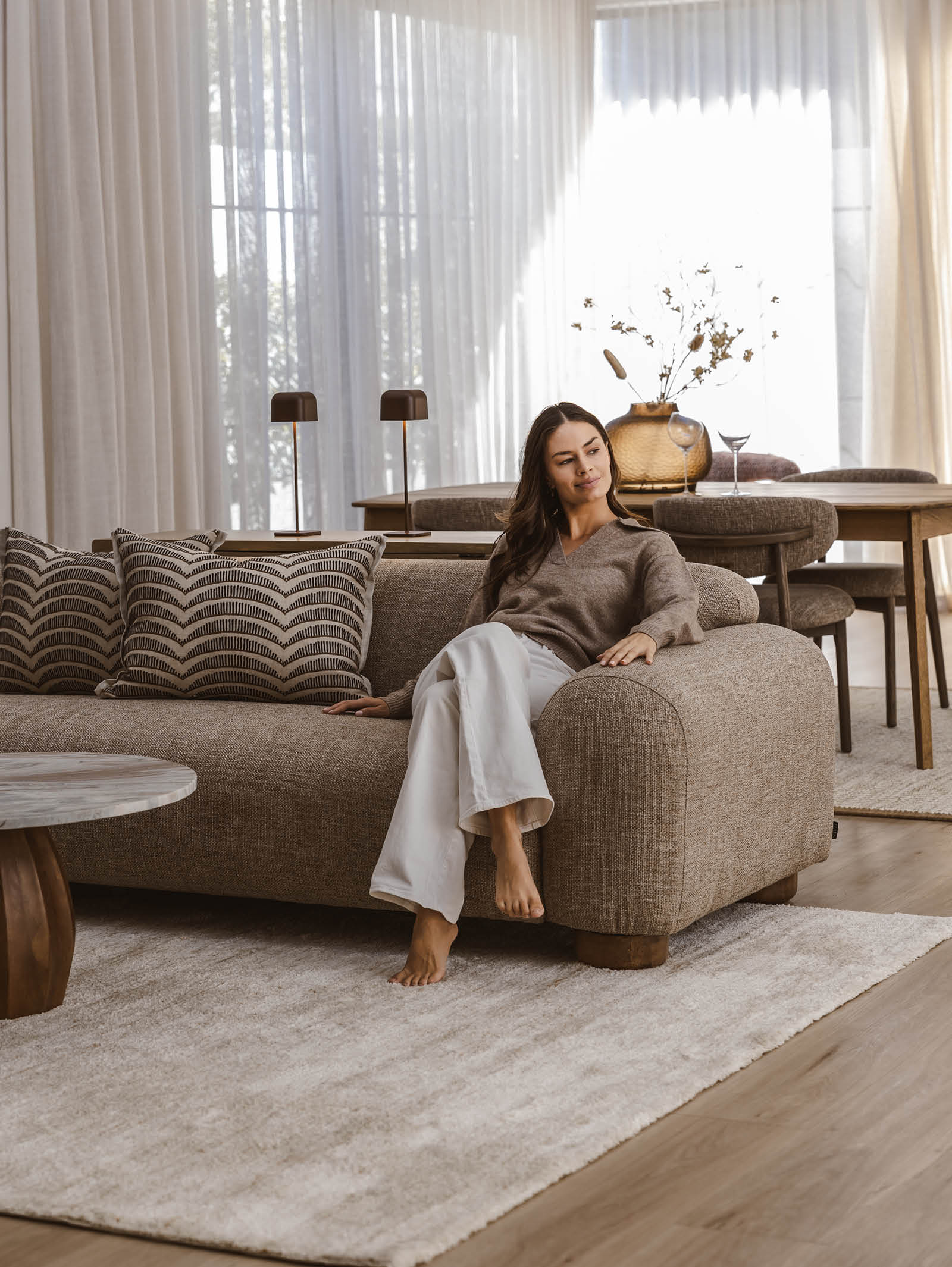The generously proportioned three-seater Alana sofa is made locally and upholstered with a variety of soft yet durable Hertex fabrics. Versatile neutral tones allow it to seamlessly complement any interior scheme while offering a wide, deep seat that invites you to stretch out and relax, making it ideal centrepiece for gatherings or quiet evenings at home.