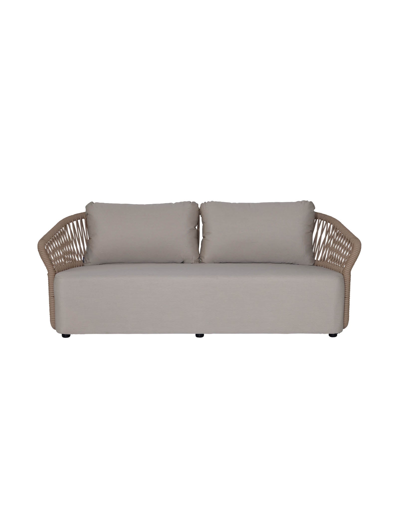 - Sofa with aluminium frame and UV resistant woven rope detail and olefin fabric.