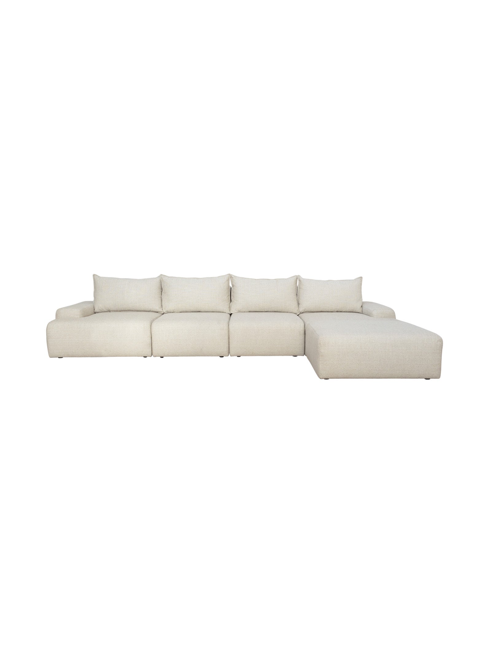 Create a cohesive living area that balances elegance with enduring comfort. Made in South Africa, the Conran modular sofa is fully upholstered with Hertex's durable Rugged fabric, a resilient blend of acrylic, polyester and olefin that withstands daily wear while maintaining its soft, textured feel. Available in two neutral colourways, the set is a versatile foundation for a range of interior styles. It includes an armchair, an ottoman and a three-seater with a chaise, allowing for flexible arrangements that adapt to your space and lifestyle.