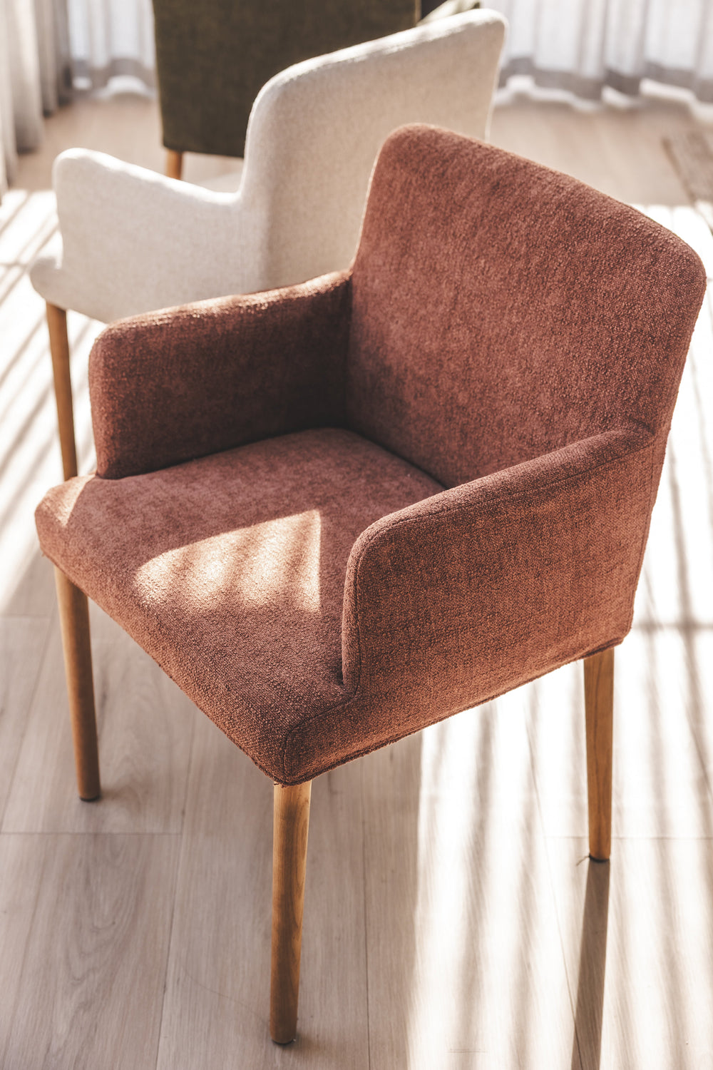 - Oak frame chair, upholstered with Hertex Essence fabric (100% Polyester).