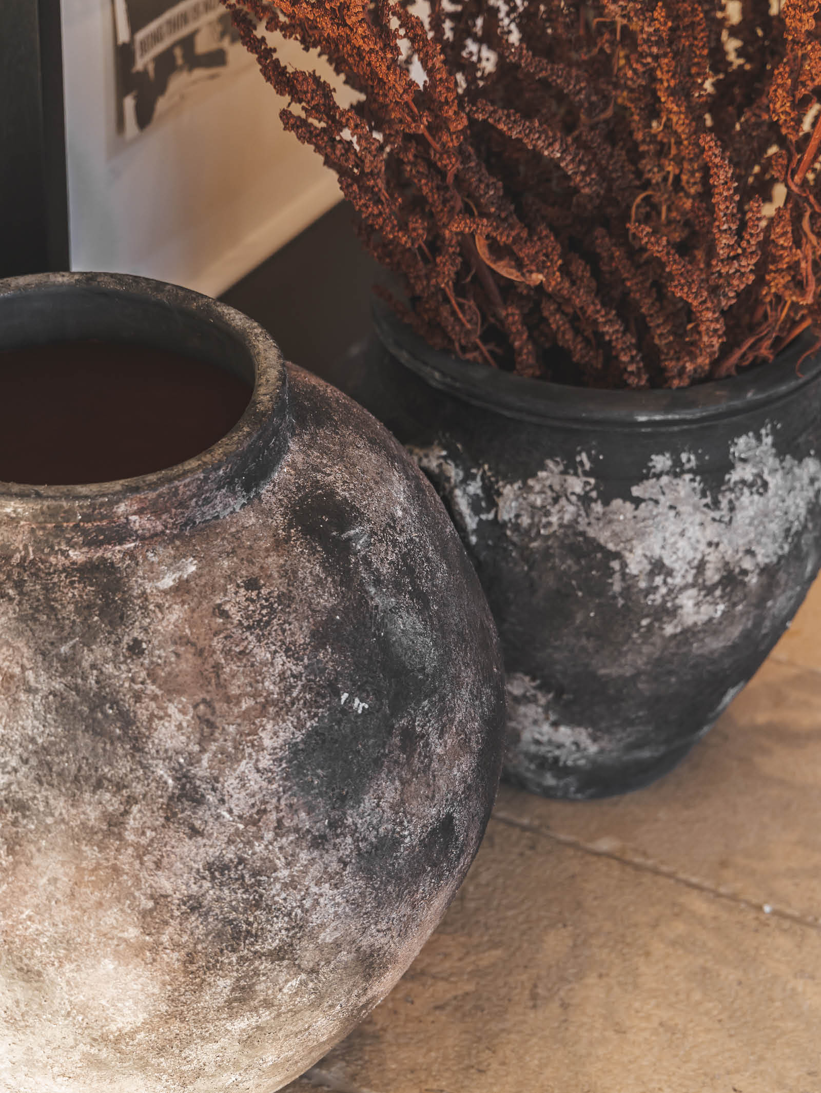 Handmade, textured terracotta vases in earthy tones.