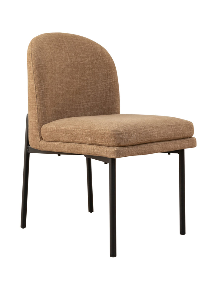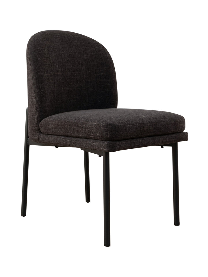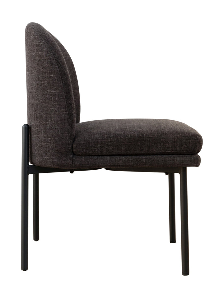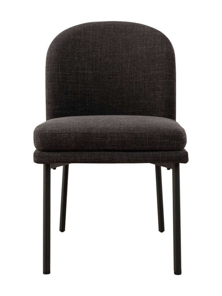 With its sculptural silhouette and tactile comfort, the Arianna dining chair will make a modern statement in your home. Upholstered with Hertex's chic Global fabric and featuring a cushy seat, this chair is designed for long conversations around the table. Slender, powder-coated steel legs offer a striking contrast to the upholstered form. Whether gathered around the dining table or styled as an accent chair, the Arianna will add simple sophistication to any space. Available in three shades.