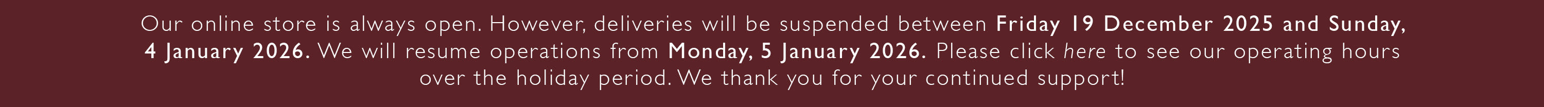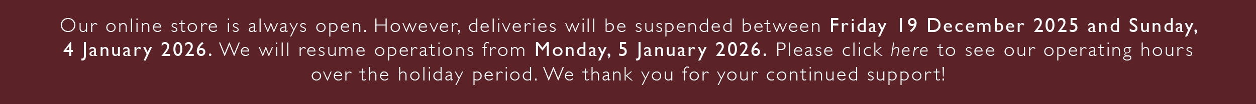 *Festive Season delivery & collection information: our online store is always open, however our fulfilment teams will be taking a well deserved break from 19th December to 5th January, 2026. Please allow additional time for your order to be delivered or for your collection to take place. Thank you for your patience.