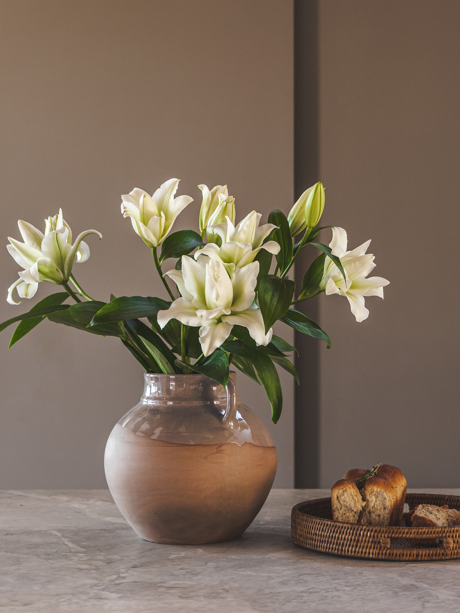 Introduce a touch of grounded elegance to your home with our handmade Wild Bloom stoneware clay vases, the perfect blend of local artistry and functional design. Offered in two distinct styles, one with ear handles and one without, each piece is unique. Made from durable stoneware clay that can safely hold water and featuring striking glazed detail, these vases are also finished with felt pads on the base to protect surfaces from scratches.