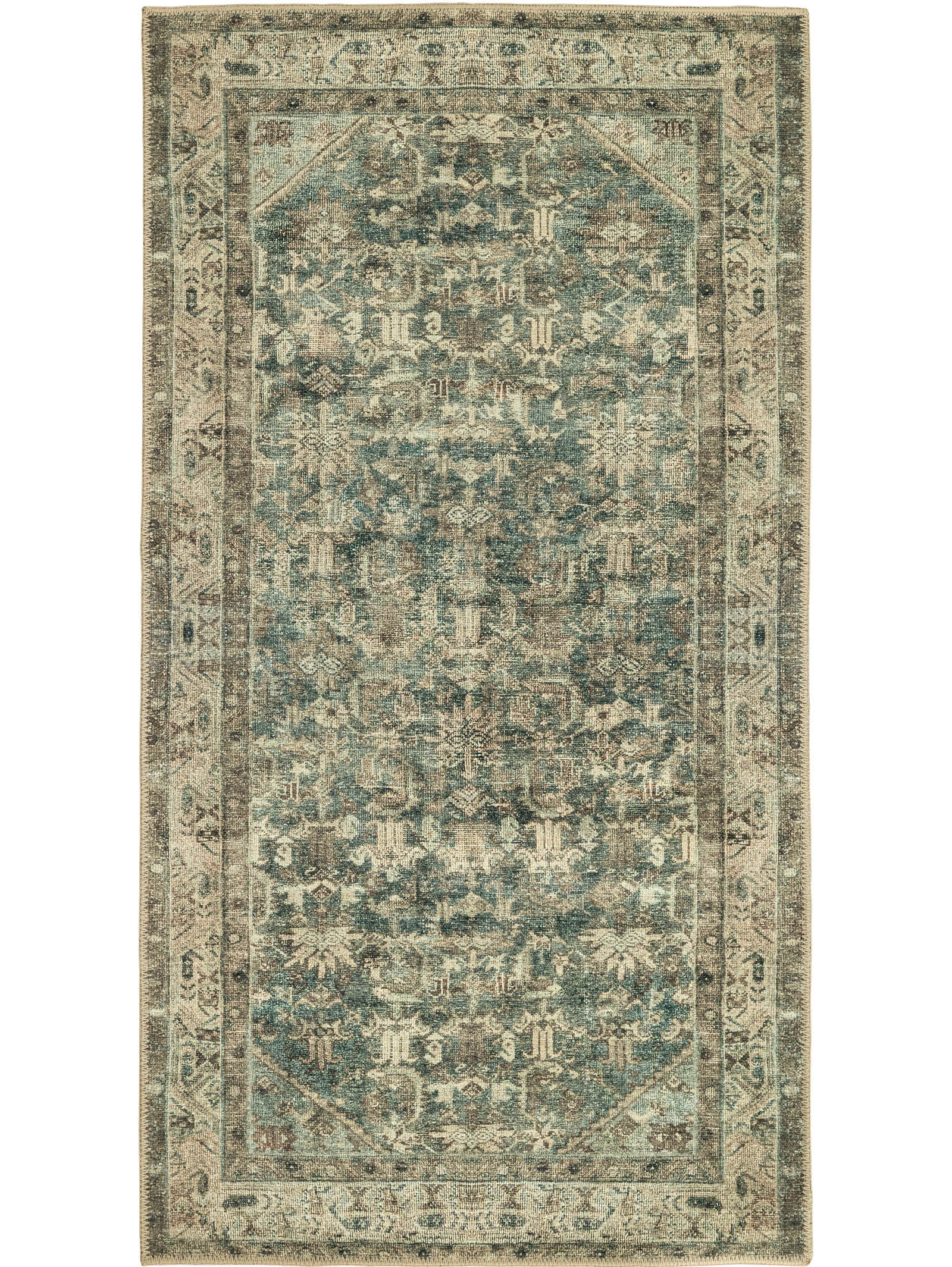 Classic rugs and runners in desaturated tones.