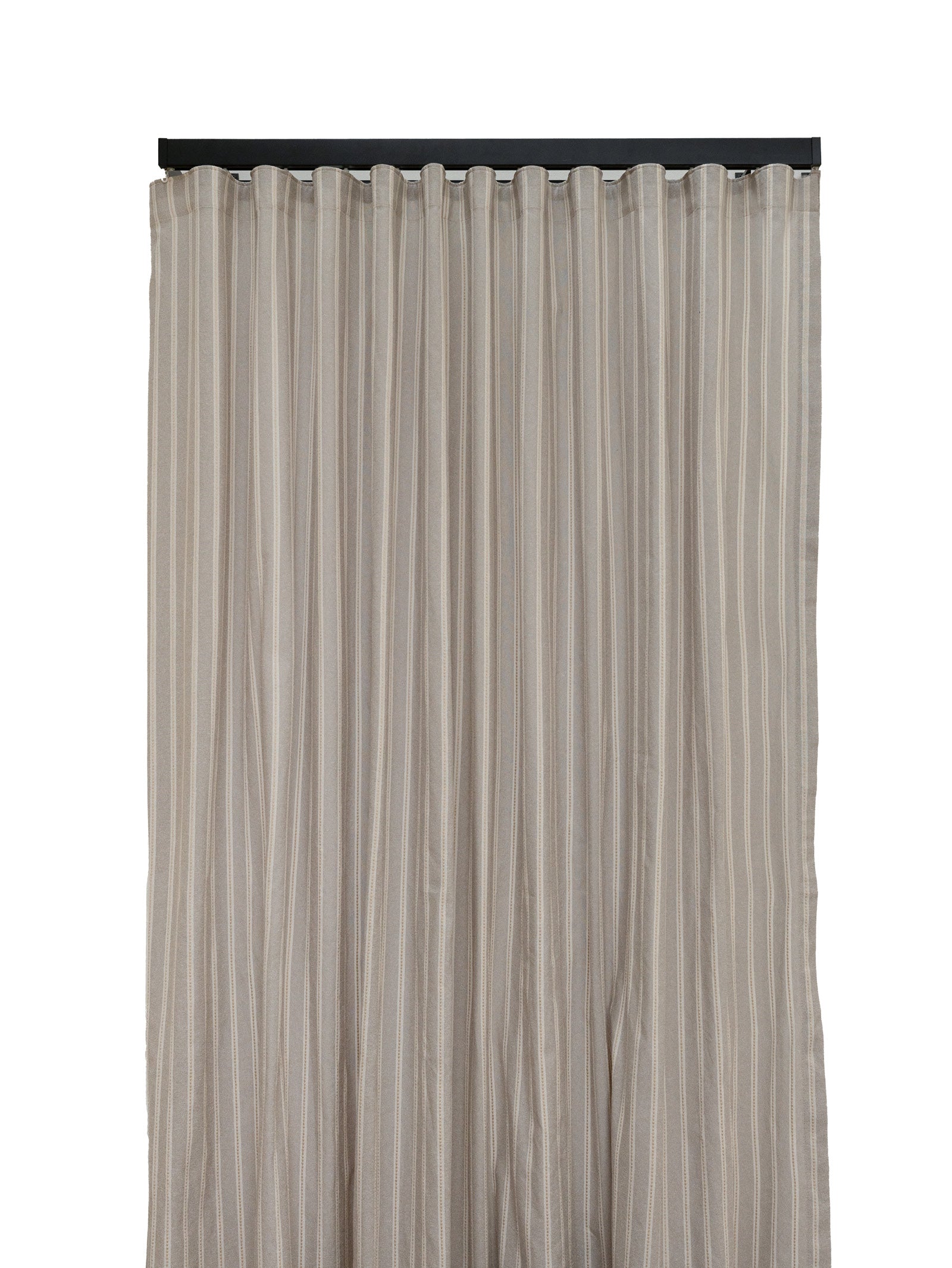 Unlined, ready-made curtains with subtle stripe and stitching detail.