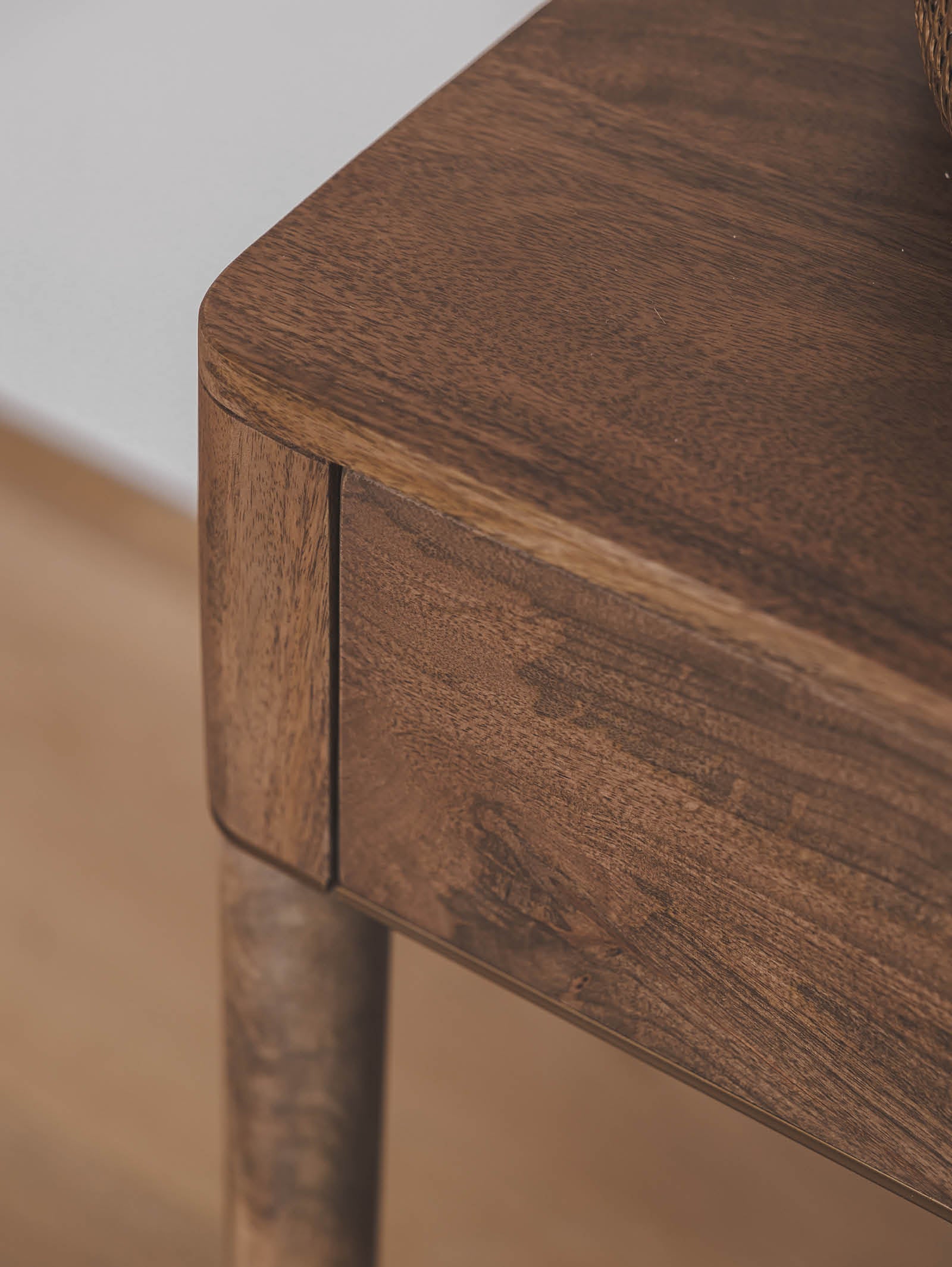 With its slim dimensions, solid wood composition and elegant brass detailing, the Siena nightstand offers a refined, modern touch to living spaces while maintaining warmth and practicality. Available in two sizes. Pairs well with the Siena console.