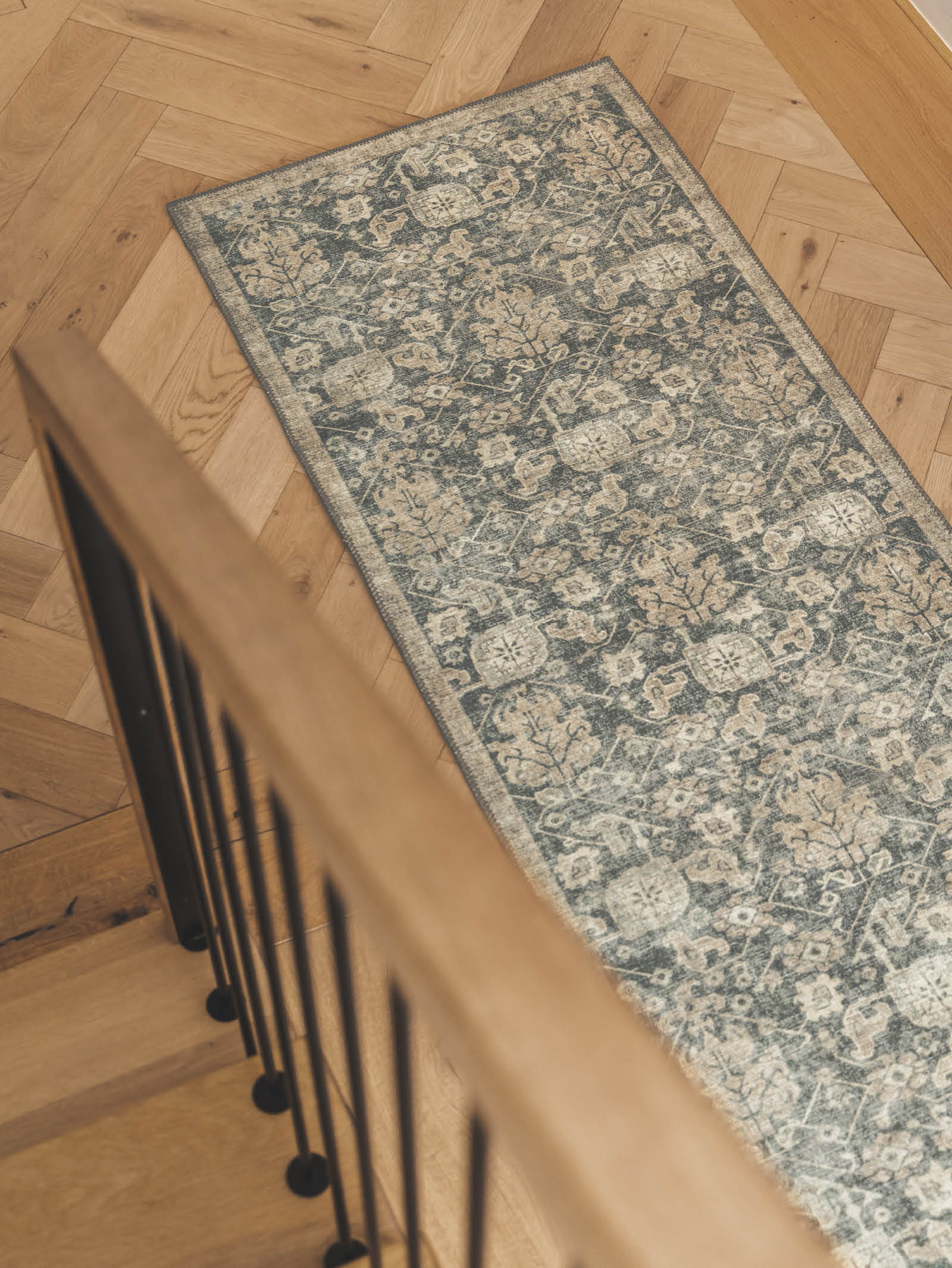 Step into a world of timeless elegance with this collection of rugs and runners that draw inspiration from the stately grandeur of manor houses, capturing their classic style in five designs. Manor rugs are made of polyester, offering a luxurious feel and exceptional durability, while a recycled polycotton backing adds a layer of sustainable integrity. A muted palette adds character to the patterns without dominating, allowing the rest of your decor to shine.