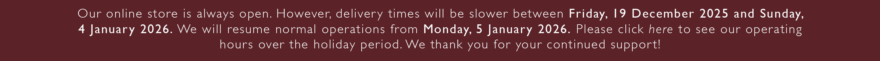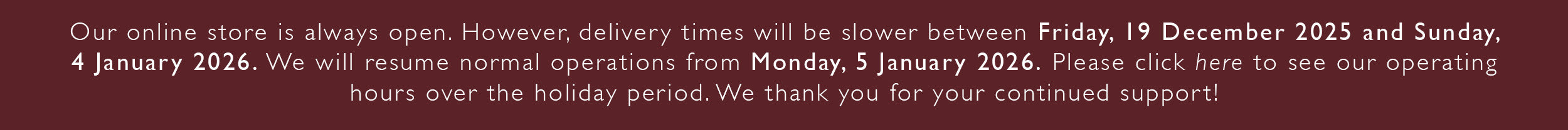 *Festive Season delivery & collection information: our online store is always open, however our fulfilment teams will be taking a well deserved break from 19th December to 5th January, 2026. Please allow additional time for your order to be delivered or for your collection to take place. Thank you for your patience.