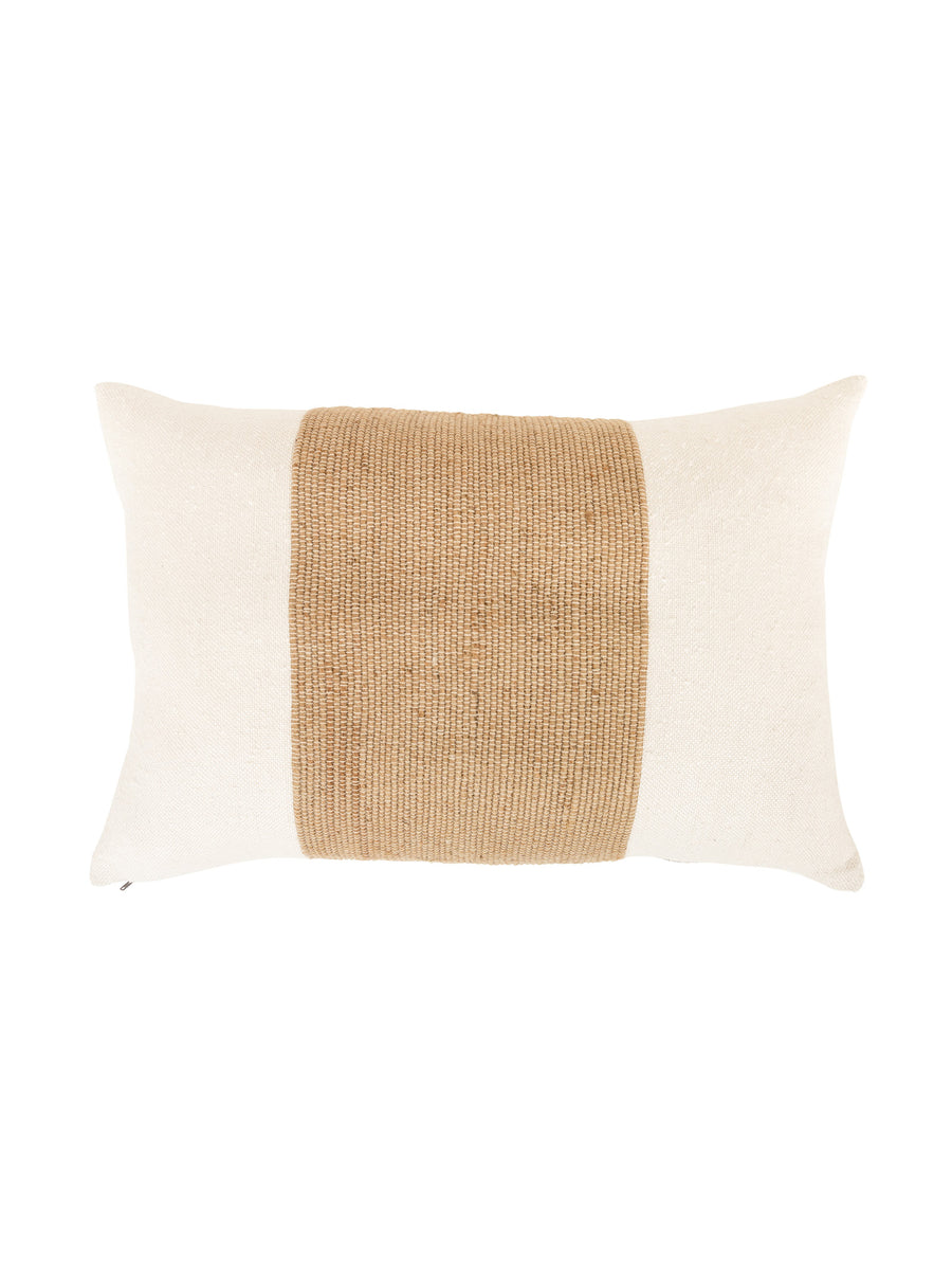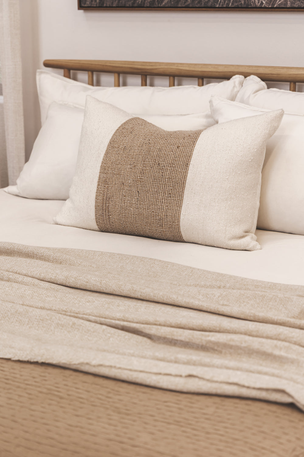 Handwoven cotton and linen-rich scatter with natural palette and organic look.